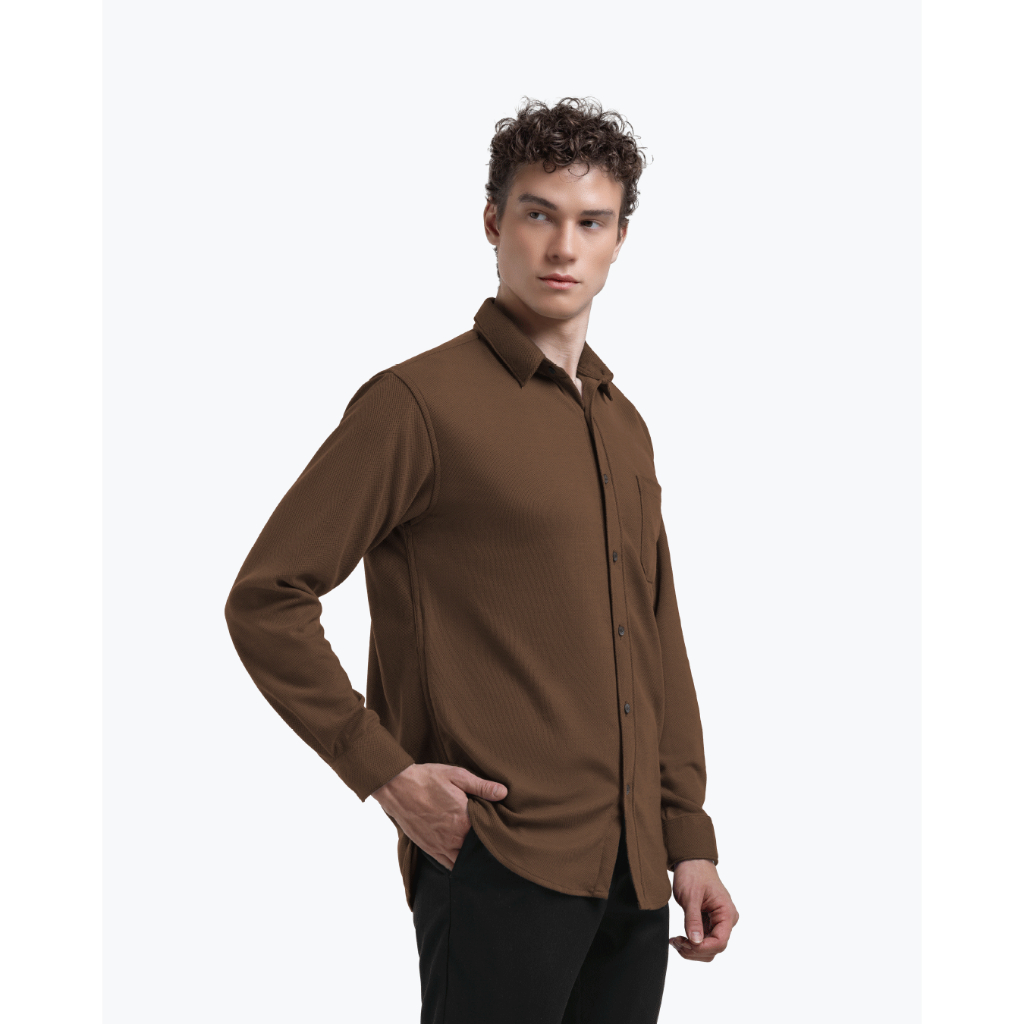 Broodis Kemeja Polos SOFTEE Coffee Cokelat Kopi Lengan Panjang Slimfit