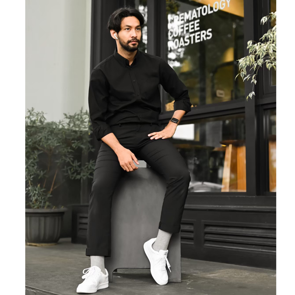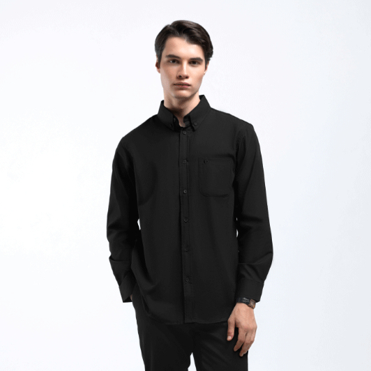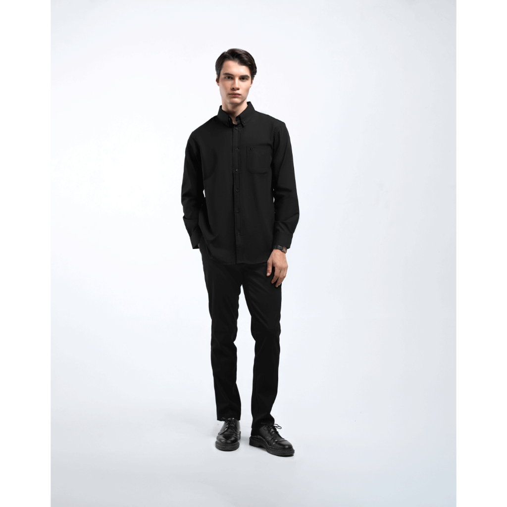 Broodis Kemeja Formal Pria RADIANT Black Polos Cotton Oxford Slimfit Lengan Panjang