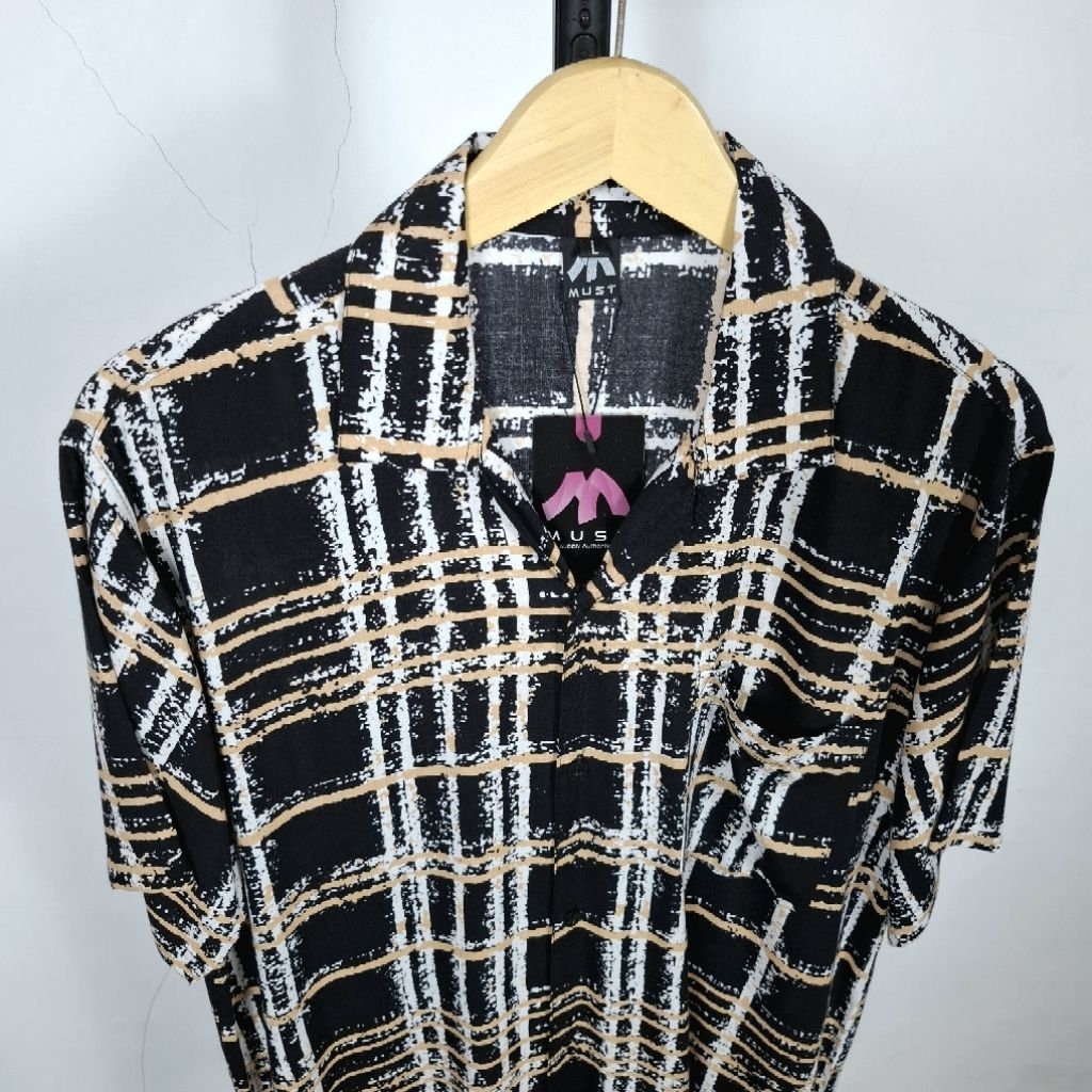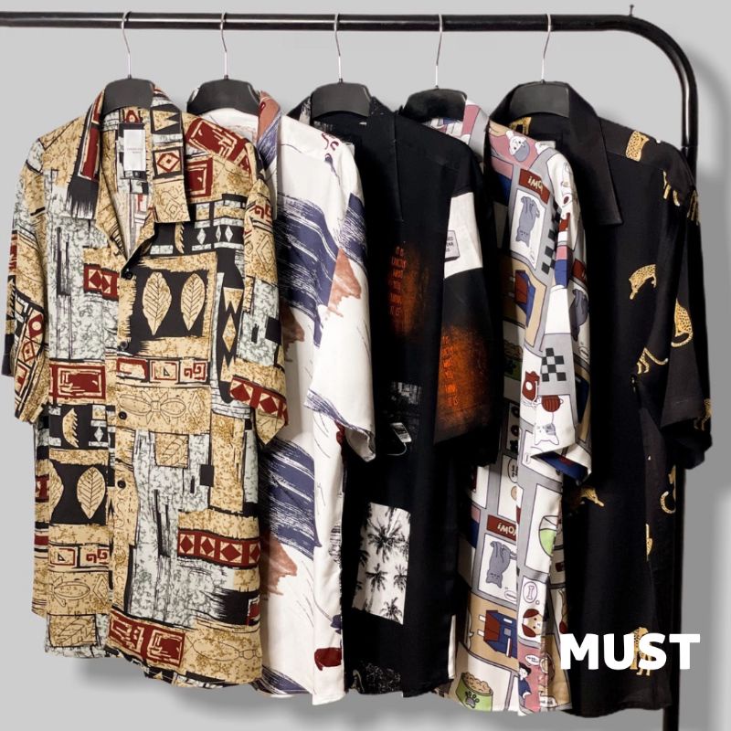 MUST Kemeja Pantai Pria Wanita Motif Kekinian Abstrak Vintage Casual Shirt Lengan Pendek Retro