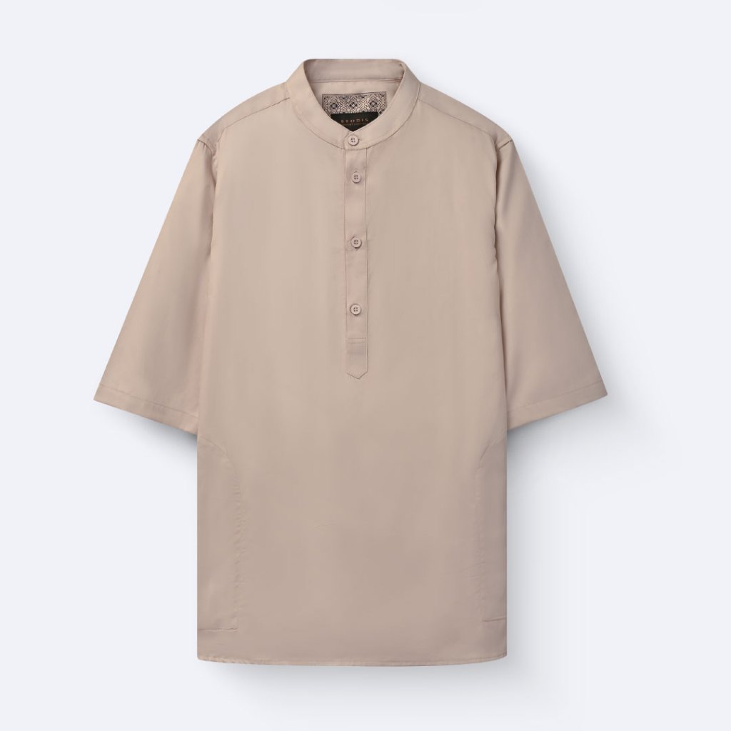 Broodis Kemeja Koko KURTA Pria Cotton Sateen Khaki Kerah Shanghai Lengan Panjang Qudsy Khaki Series