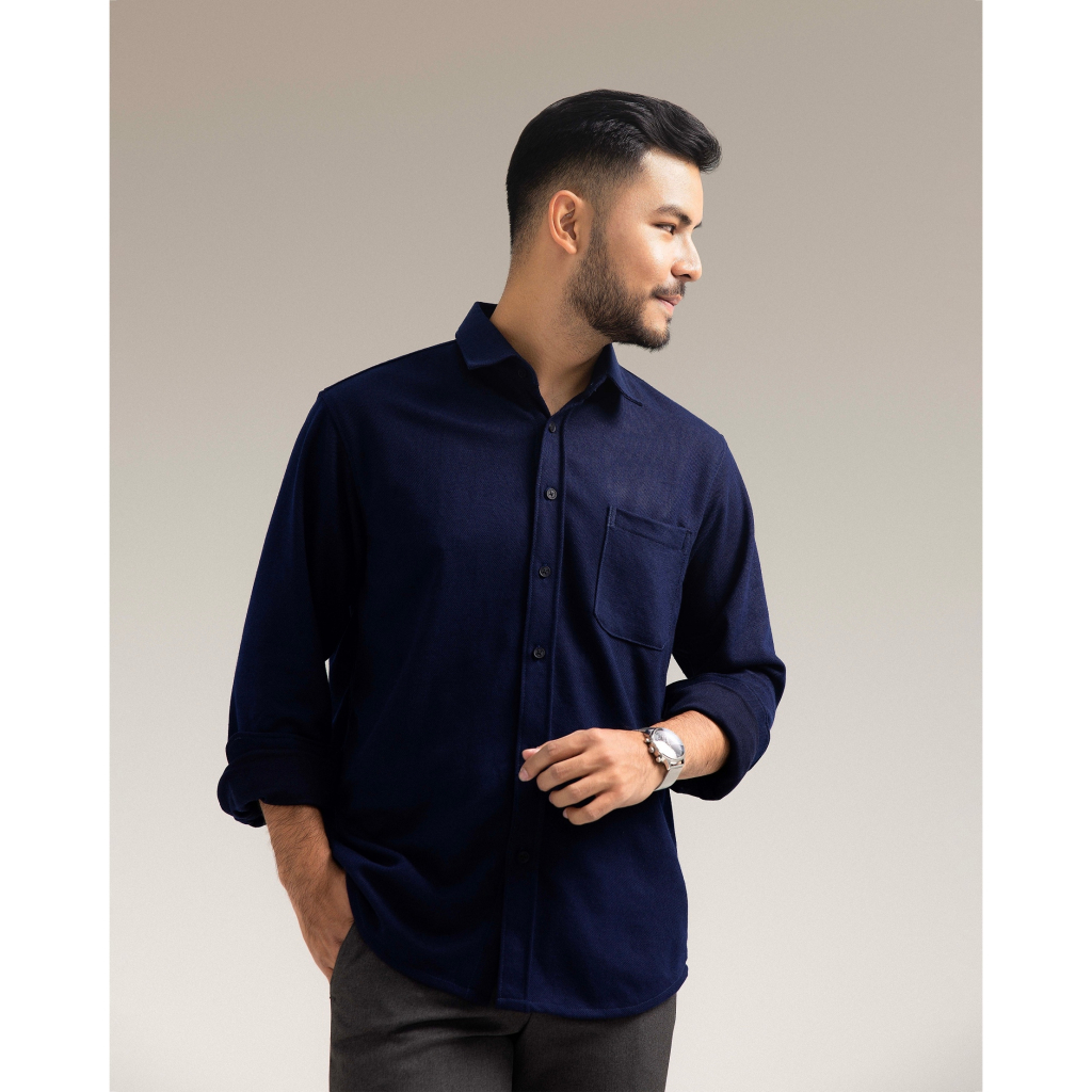 Broodis Kemeja Polos Pria Lengan Panjang Navy Cotton SOFTEE Slim Fit