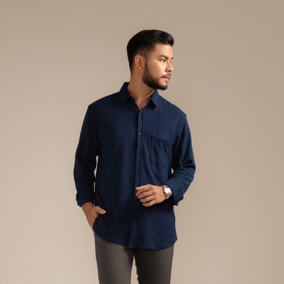 Broodis Kemeja Pique GENTLY Navy Lengan Panjang