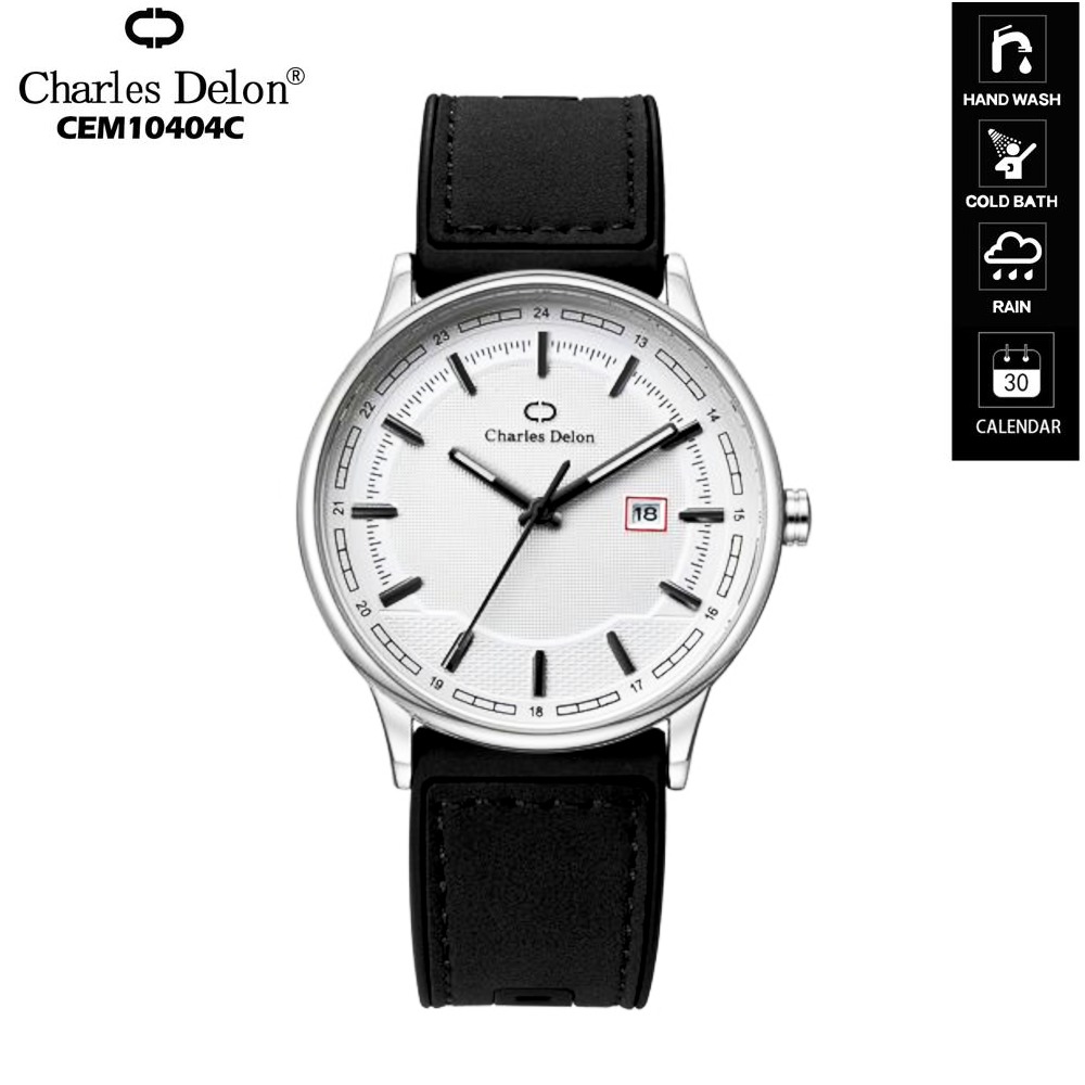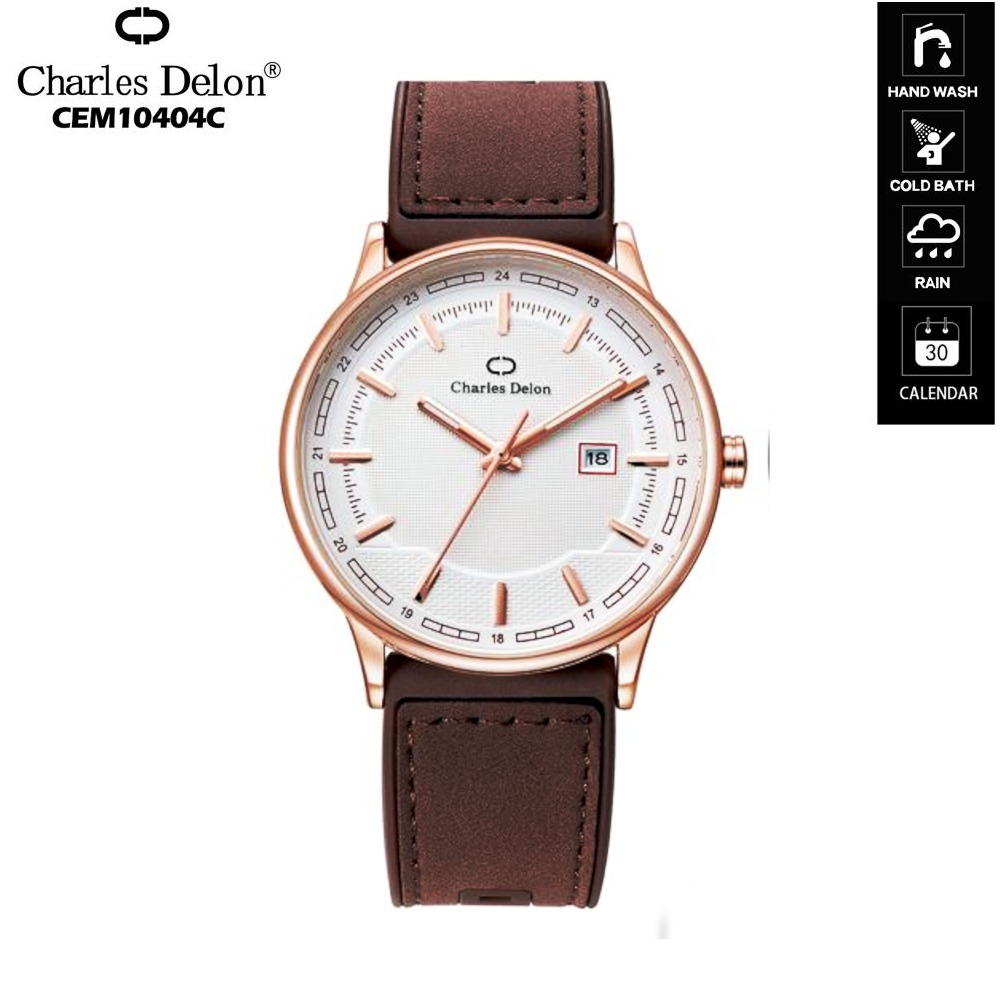 Jam Tangan Pria Analog Original Charles Delon 10404 Tali Kulit Water Resistant Kasual Elegan
