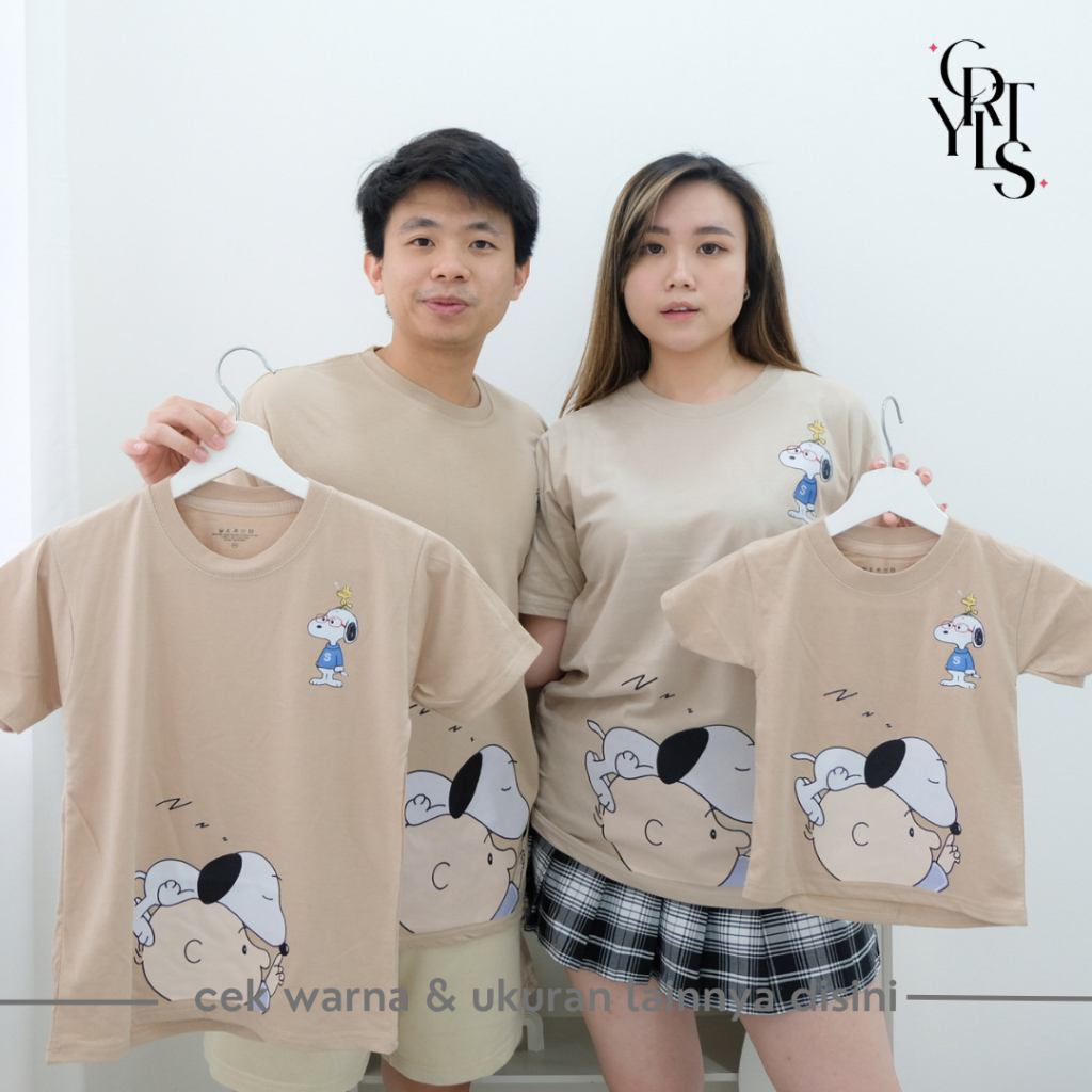CAROTYLES Baju Kaos Couple Keluarga Motif SNPY SLEEP Wanita Atasan Lengan Pendek dan Panjang Katun Cauple Cople Kapelan