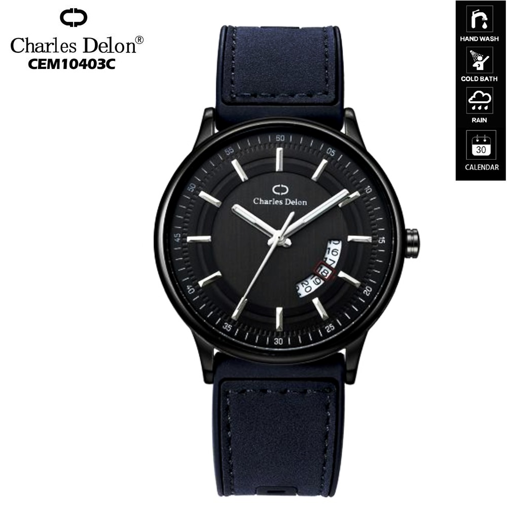 Jam Tangan Pria Original Charles Delon 10403 Analog Tanggal Sabit Tali Kulit Kasual Elegan