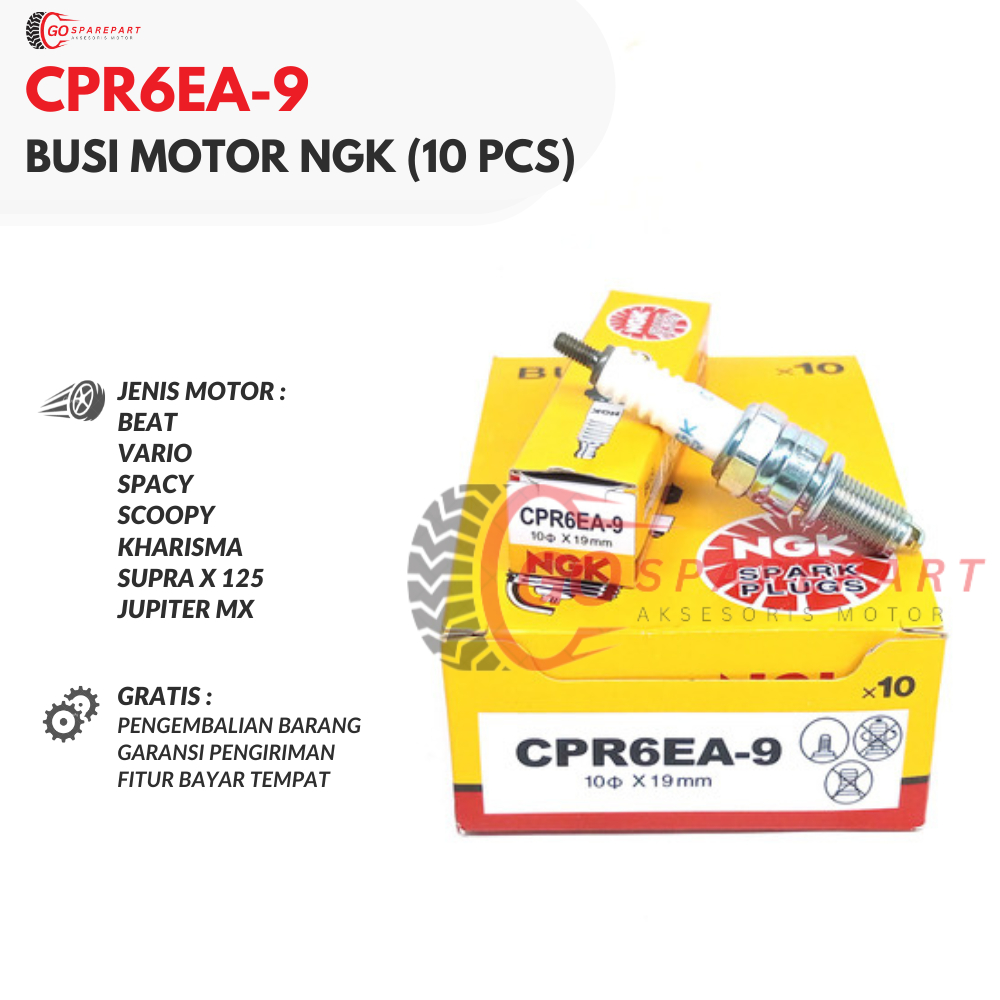 (BUSI NGK) CPR6EA-9 BUSI ( 10 PCS ) BEAT / VARIO / SPACY / SCOOPY / KHARISMA / SUPRA X 125 / JUPITER MX / BUSI MOTOR / B