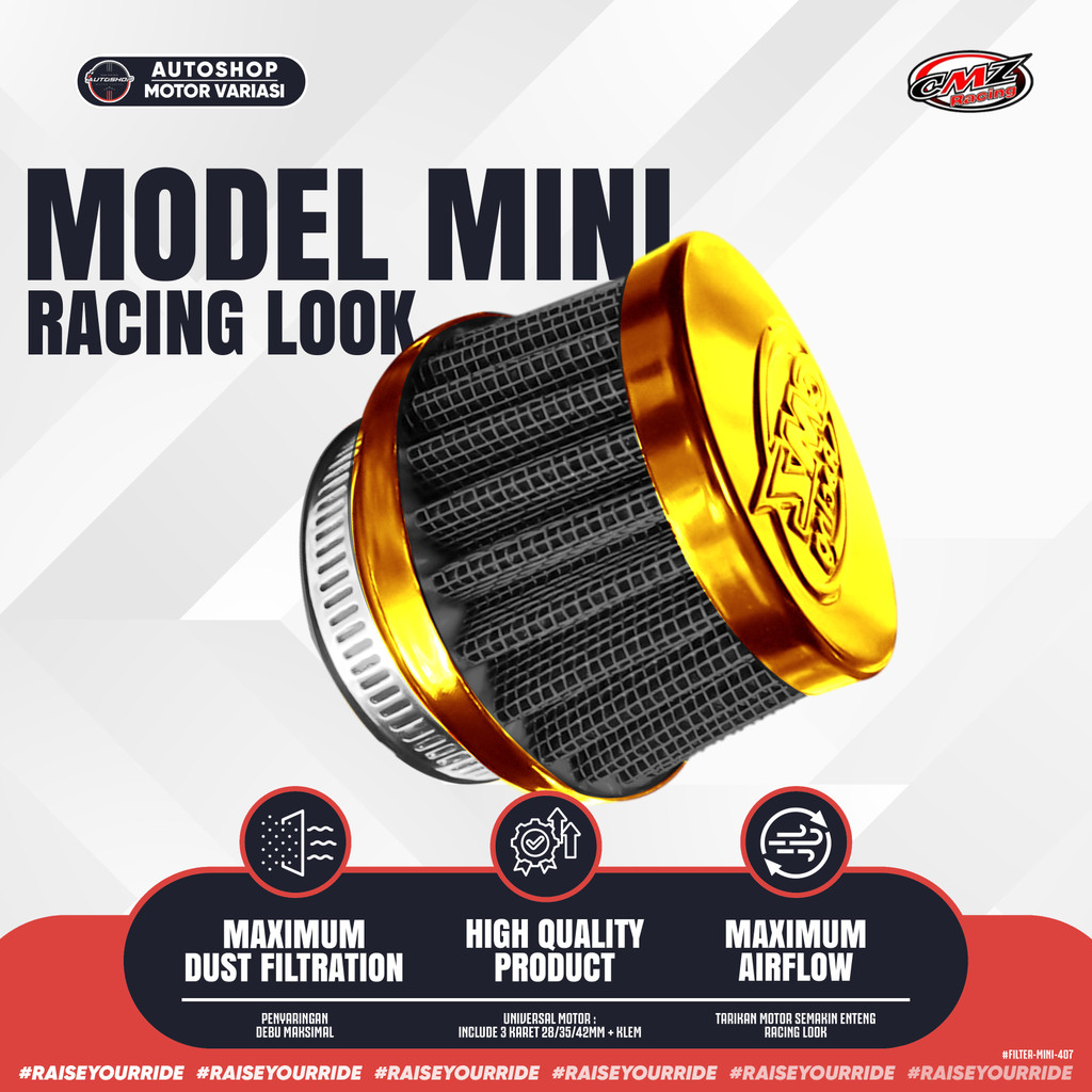 Filter MINI RACING Saring Udara Filter Motor MODEL MINI DIMETER 2.5 INCH Termasuk KARET 28/35/42 MM Universal MOTOR