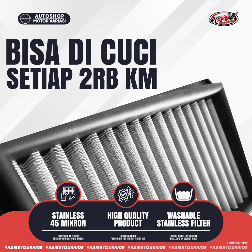 Filter Udara Stainless – Motor Vario, Beat, F1 FI, Genio, Scoopy, NMAX, AeroX, PCX, CBR 150, Lexi
