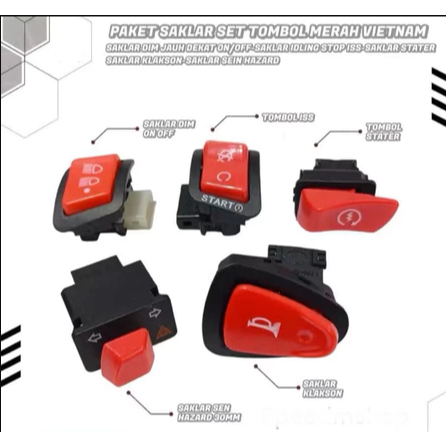PAKET SAKlAR TOMBOL SAKlAR VETNAM MERAH DIMMER STARTER KLAKSON ENGINE SEN UNIVERSAL VARIO 125 SPACY REVO BEAT SCOOPY FI