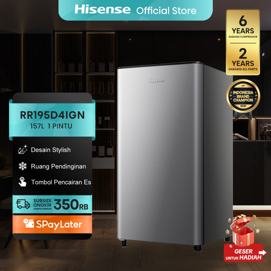 Hisense Kulkas RR195D4IGN Refrigerator Mini Bar Kapasitas 157L 1 Warna Silver Pintu Desain Unik dan Bergaya Ruang Pendin