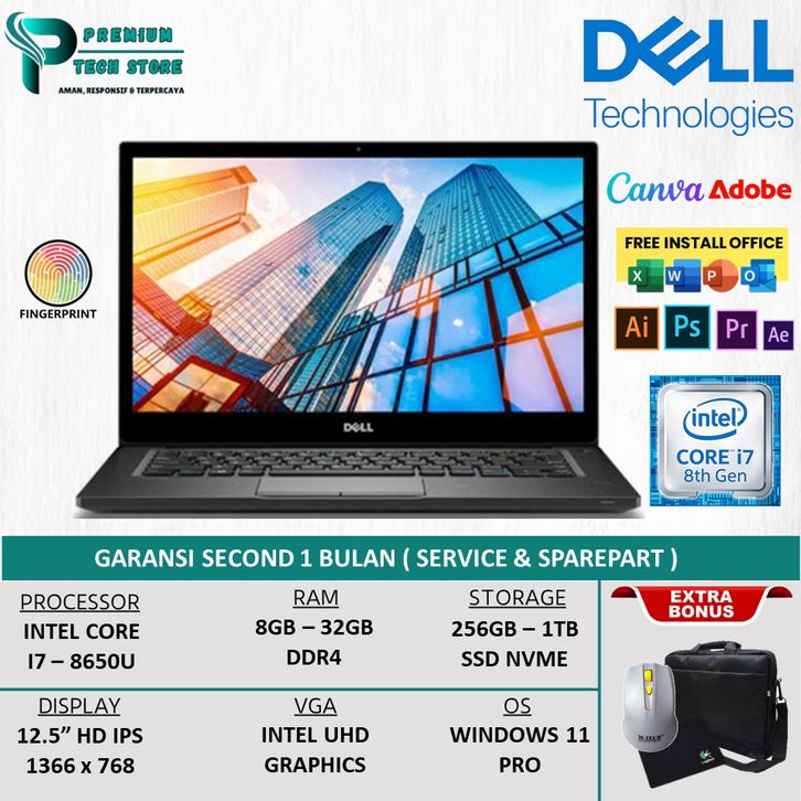 Laptop Dell Latitude 7290 Intel i7 8350U Ram 32GB 1TB SSD 12.5 Inch HD Windows Profesional Original