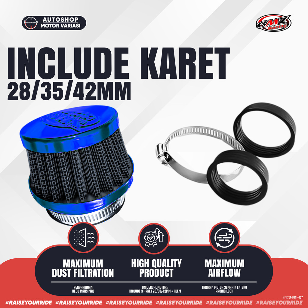 Filter Mini Racing – Saringan Udara Motor Model Mini Diameter 2.5 Inch + Karet 28/35/42MM Universal - NOAFF