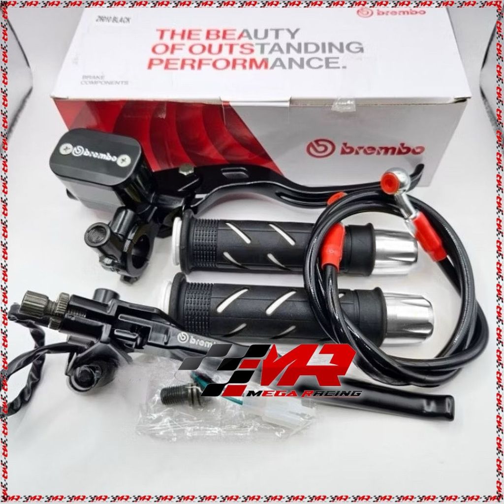 Paket 4in1 Master Rem Tabung Kotak + Handgrip Sisik + Jalu Stang Cnc + Selang Rem 95cm Universal