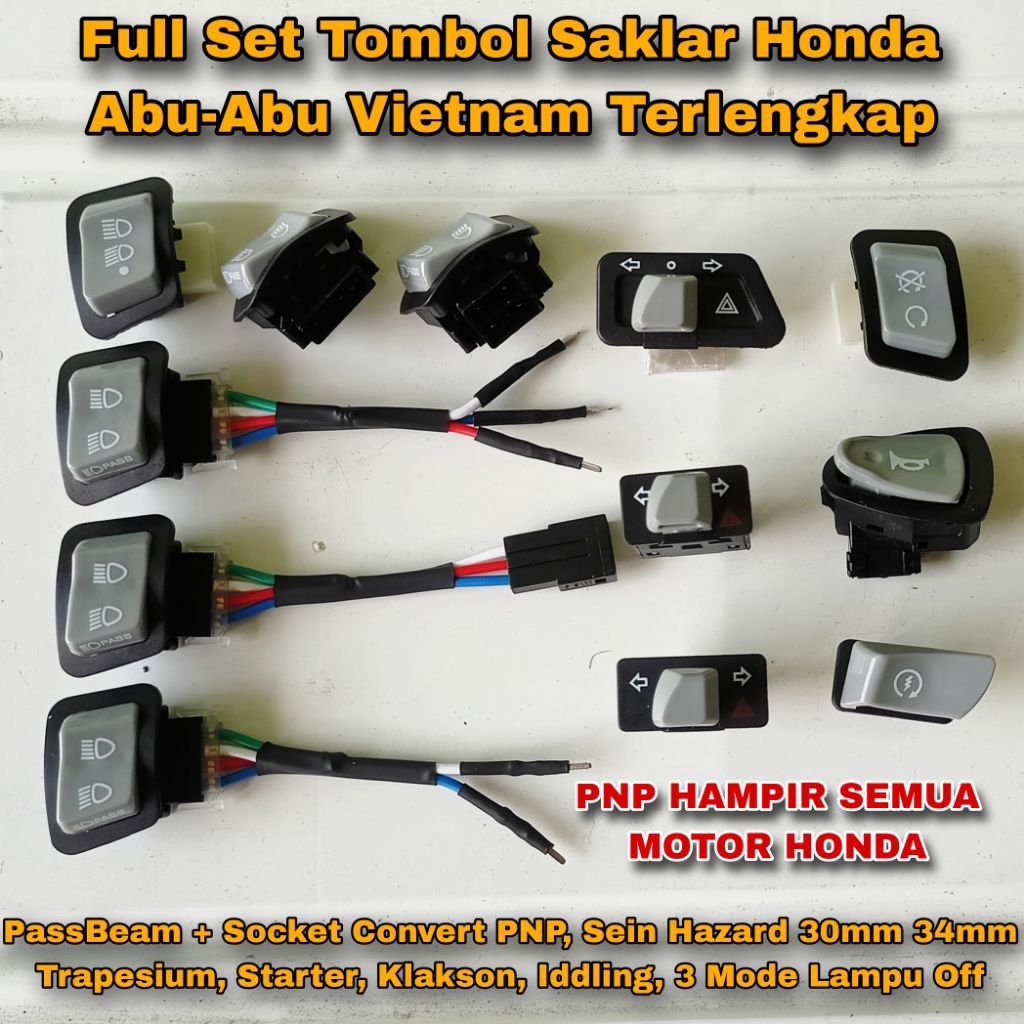Full Set Tombol Saklar Honda Abu Abu Vietnam Lengkap Pass Beam Iddling Sein Hazard Starter PNP Vario Beat Scoopy Spacy K