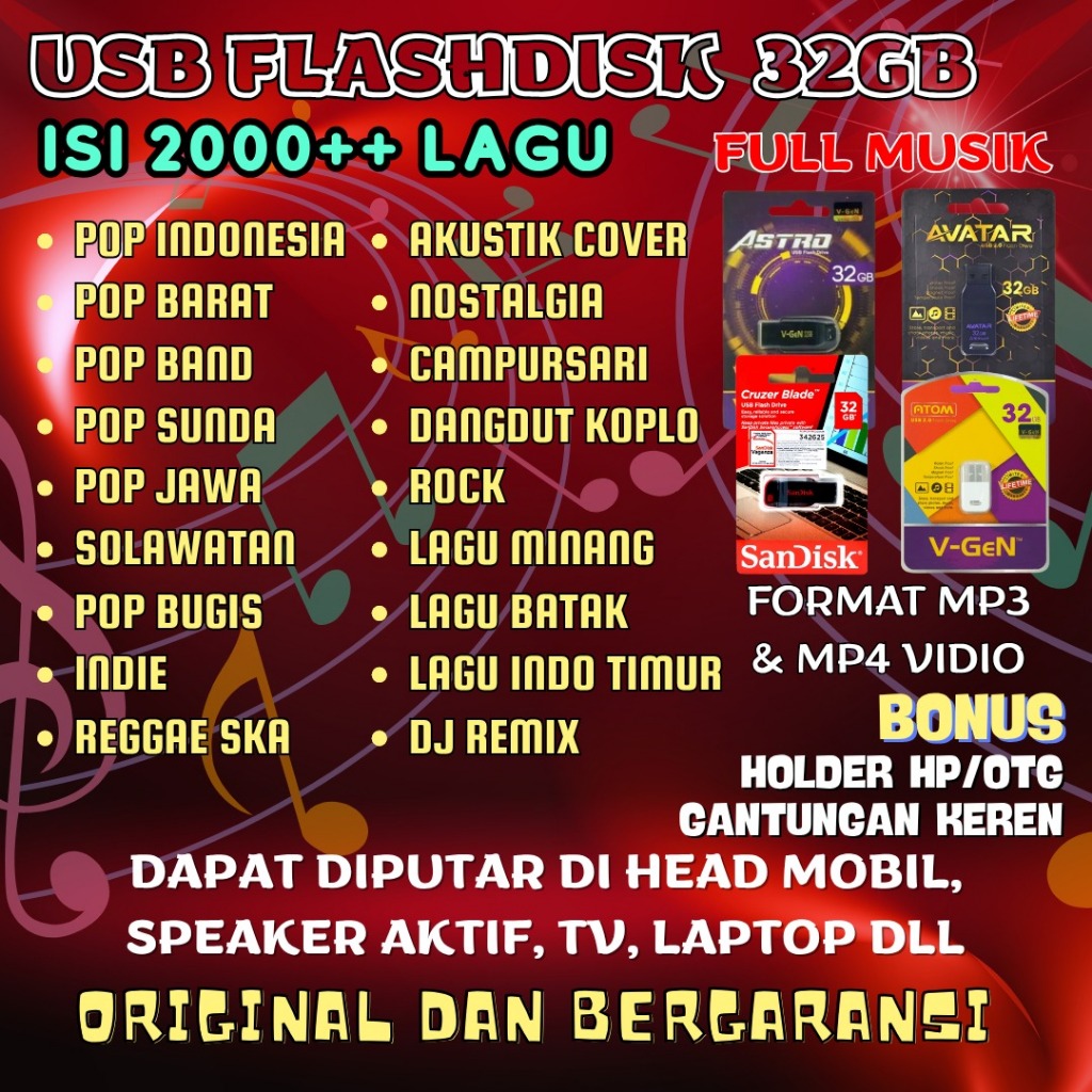 Flash disk Lagu Terlengkap Audio Video Mobil Dan Speaker Memori 32GB