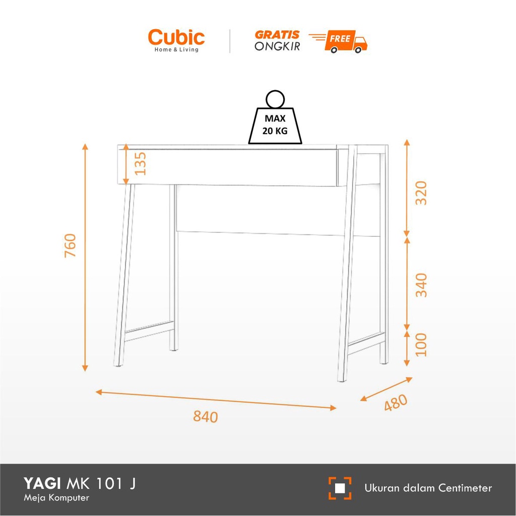 [Mall] MEJA KANTOR MINIMALIS CUBIC MEJA KERJA RUMAH MEJA KOMPUTER MEJA BELAJAR ANAK INDUSTRIAL MINIMALIS YAGI MK 101 J