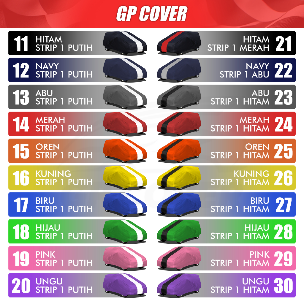 Avanza Old 2003-2021, Xenia Old 2003-2021, Avanza New 2022-2025, Xenia New 2022-2025, Innova Old 2005-2015, Innova New 2016-2025, Inv. Zenix 2022-2025, Calya 2016-2025, Sigra 2016-2025, Brio Old 2011-2017, Brio New 2018-2025, Xpander 2017-2025, XpnderCros 2019-2025, Rush Old 2006-2016, Rush New 2017-2025, Terios Old 2006-2016, Terios New 2017-2025, Agya Old 2013-2022, Agya New 2023-2025, Ayla Old 2013-2022, Ayla New 2023-2025, HR-V Old 2014-2021, HR-V New 2022-2025, XL-7 2020-2025, Veloz Old 2012-2021, Veloz New 2022-2025, Mobilio 2014-2025, Ertiga Old 2012-2017, Ertiga New 2018-2025, "MOBIL LAINNYA"