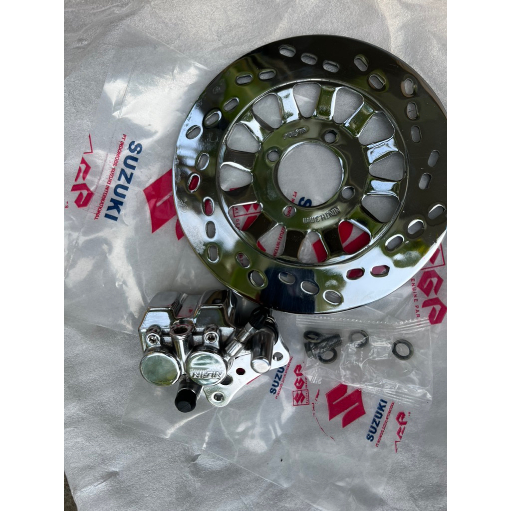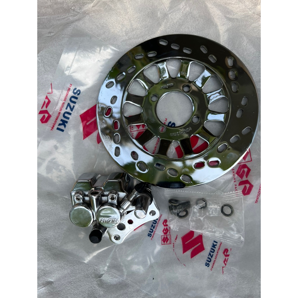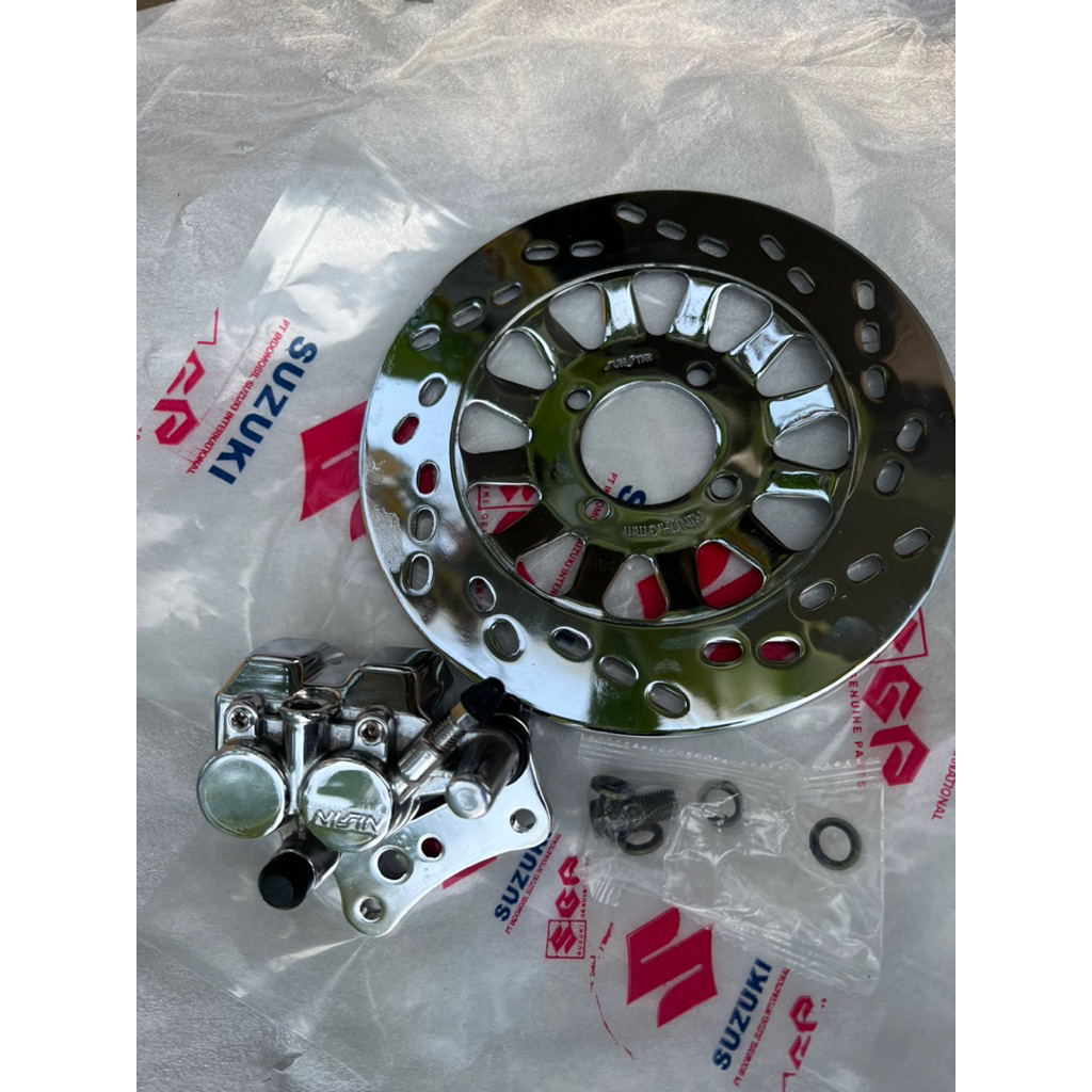 Kaliper Kepala babi dan dis piringan cakram DEPAN satria 2 tak hiu Lumba malaysia 6 speed Crom