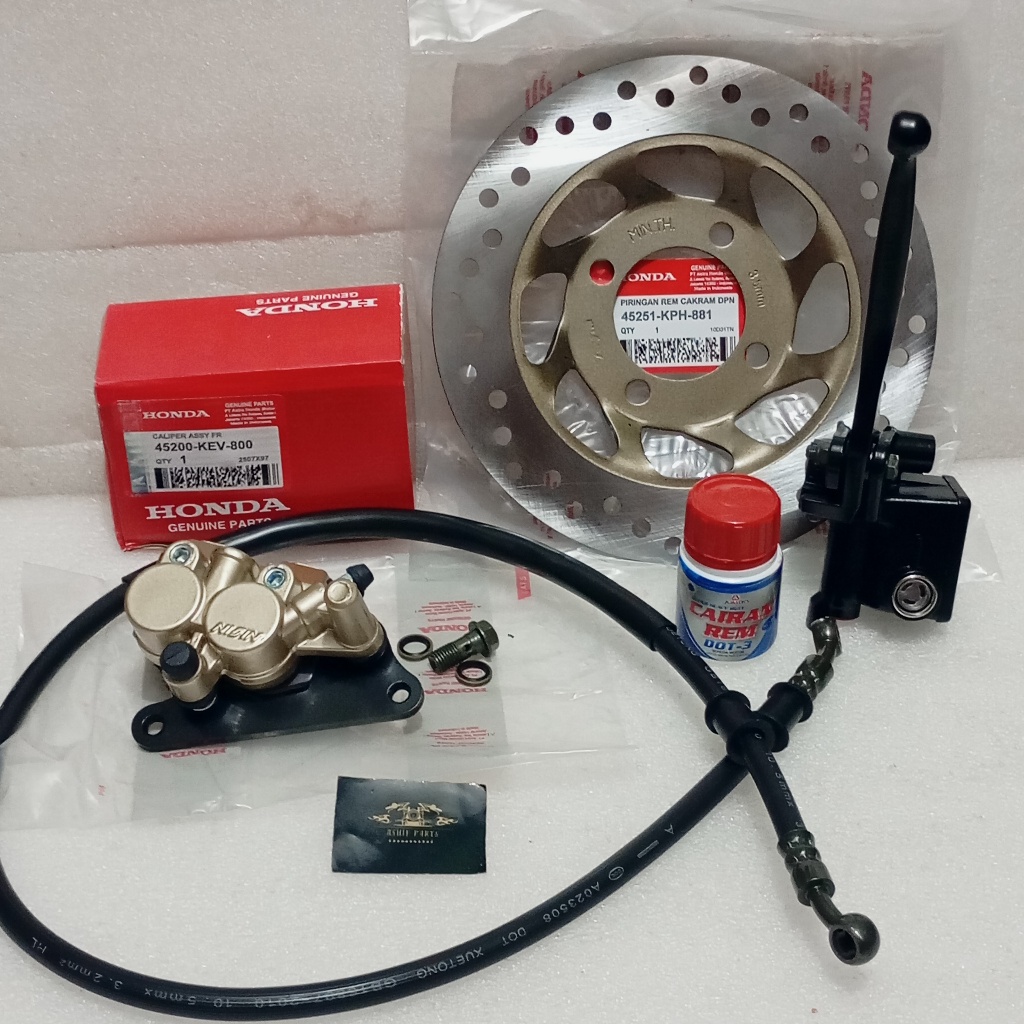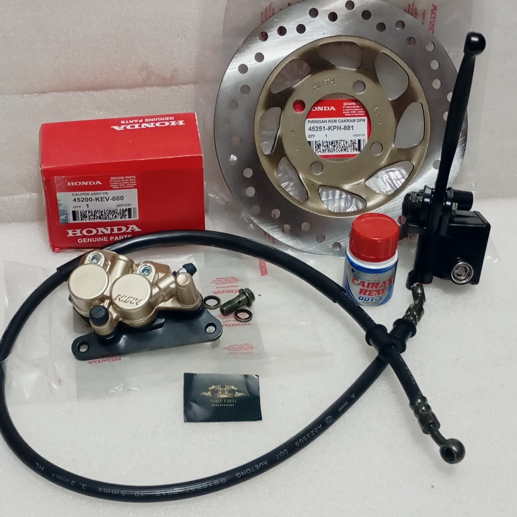 Paket 5 Item Kaliper Rem Set Cakram Depan Karisma Supra X 125 Supra Fit New Revo Lama KEV/KPH Set Master Rem Assy + Selang Rem + Minyak Rem Jumbo 50ML