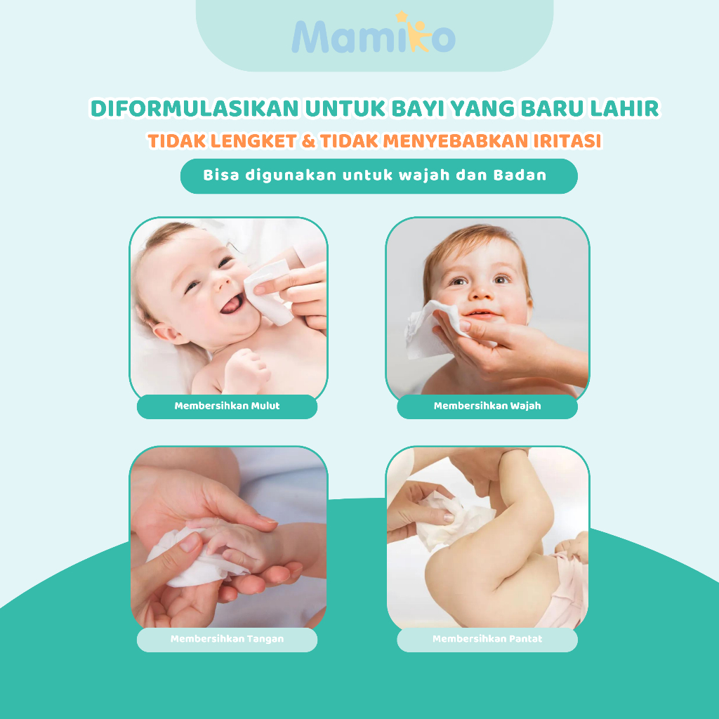 Mamiko Wet Tissue Baby Wipes Pure Water Hand Mouth - Tisu Basah Bayi Non Alkohol Non Parfume