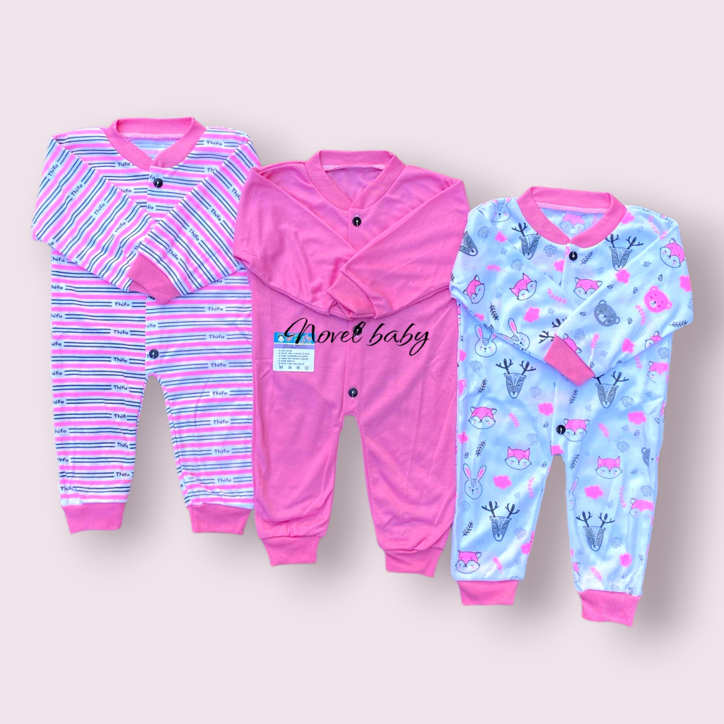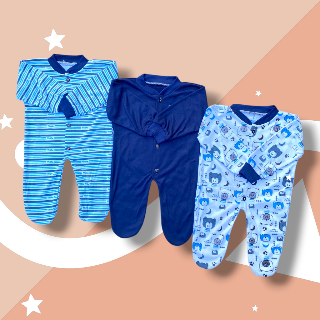 3 PCS JUMPSUIT Bayi/Sleepsuit Baby Newborn Full Motif Polos Tutup Dan Buka