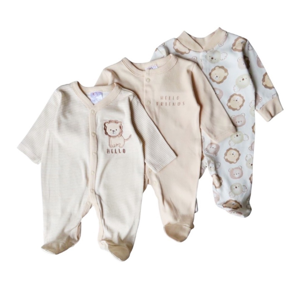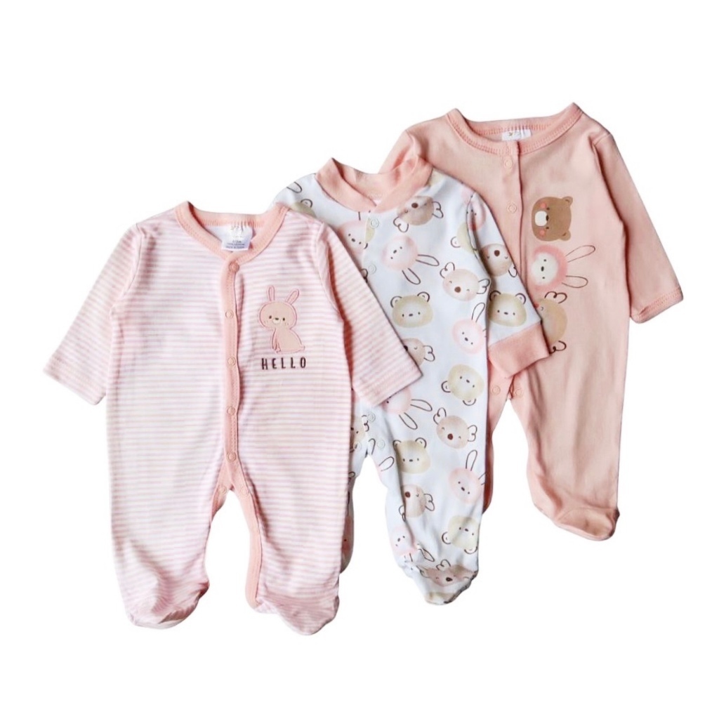 LITTLESUMMERISE - 3pcs Sleepsuit Bayi 0-9Bulan Baju Tidur Bayi Anak Paket Jumper Panjang