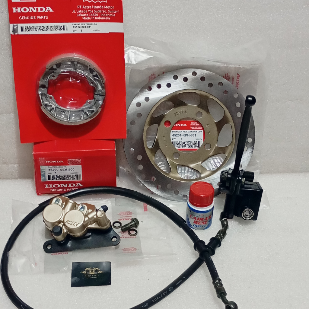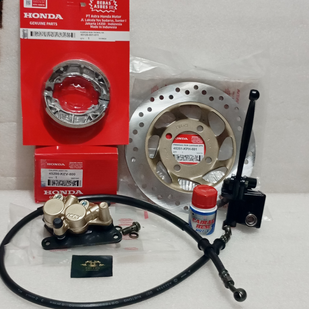 Paket 6 Item Kaliper Rem Set Cakram Depan Karisma Supra X 125 Supra Fit New Revo Lama KEV/KPH Set Master Rem Assy + Selang Rem + Kampas Rem Belakang + Minyak Rem Jumbo 50ML
