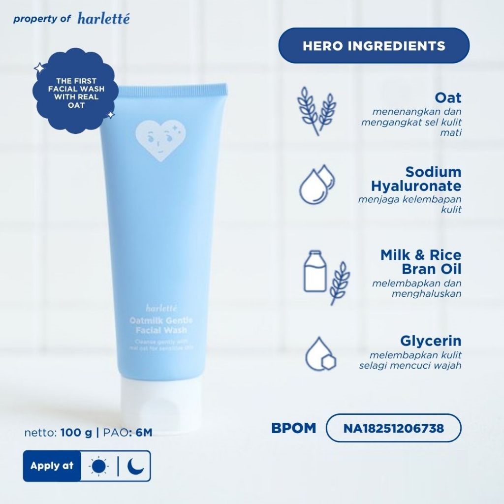 [Star] Harlette Oatmilk Gentle Facial Wash | Sensitive, Dry, Combination, Irritated Skin, Membersihkan & Mencerahkan
