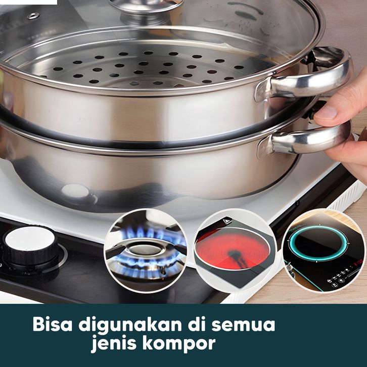 PANCI KUKUS STAINLESS STEEL 2 TINGKAT STEAMER Free Ongkir Kualitas Terbaik Terlaris