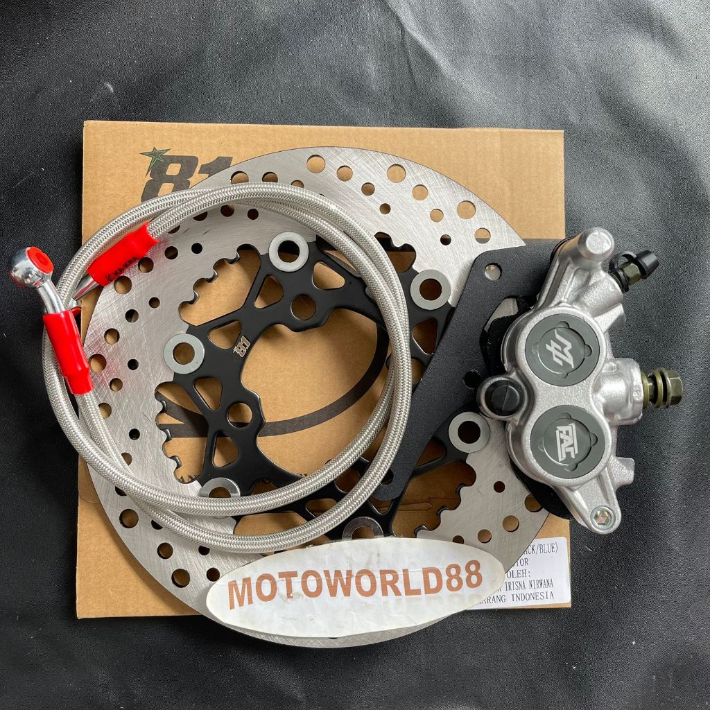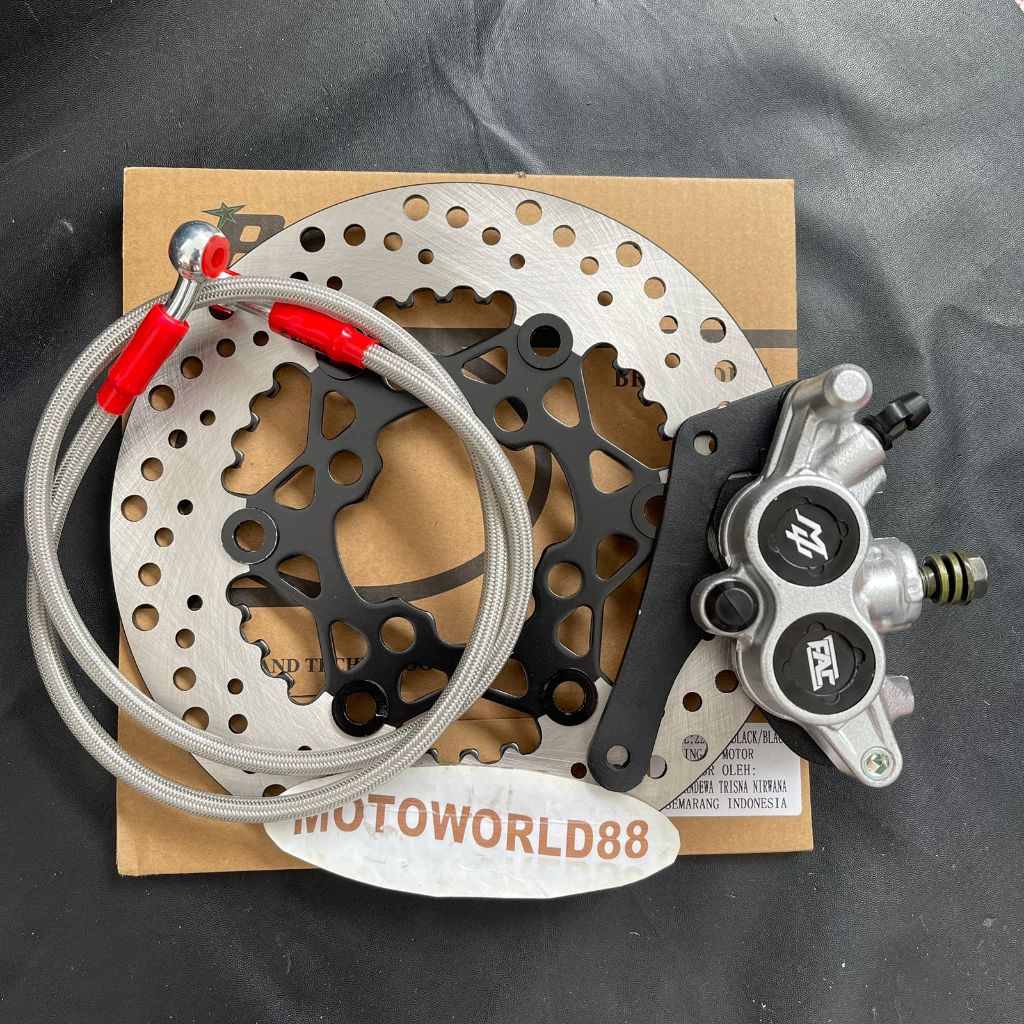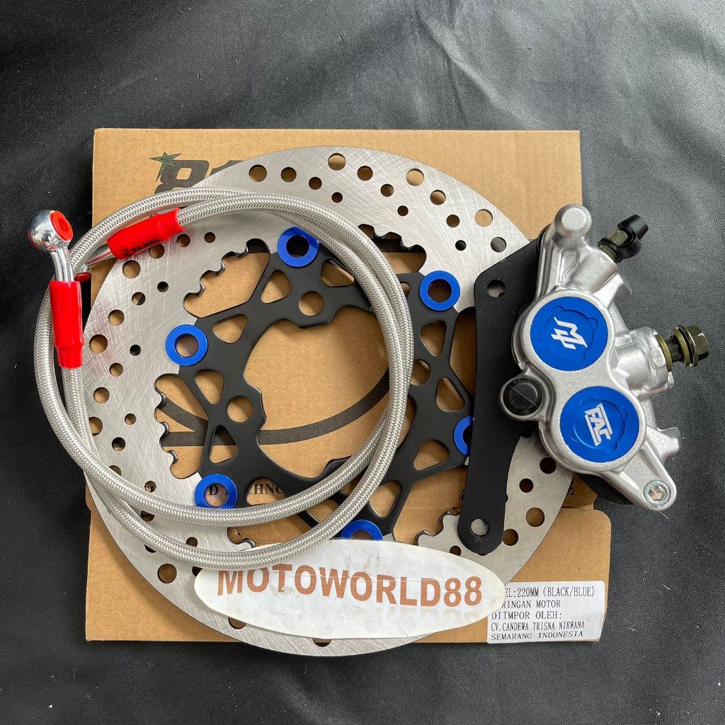 PIRINGAN DISC CAKRAM DEPAN 220MM + KALIPER SAMURAI MU FAC 2PISTON + SELANG REM 95CM CARBON + BREKET VARIO BEAT SCOOPY GENIO