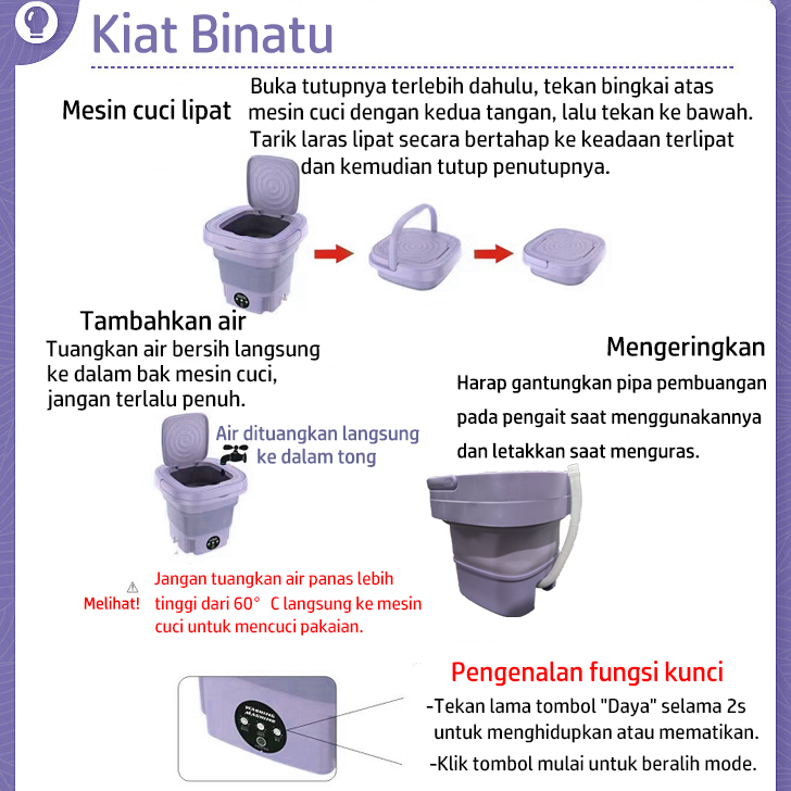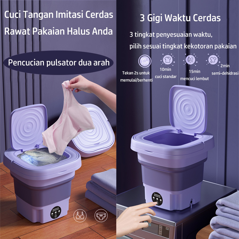 Keeone Mesin Cuci Mini Portable 2 Tabung 8L Mesin Cuci Lipat Otomatis Mesin Pengering Pakaian Sterilisasi Cahaya Biru