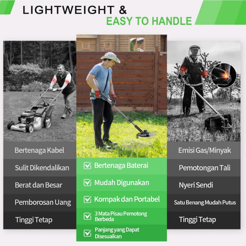 TANZU Mesin Pemotong Rumput Listrik Brushless Tanpa Sikat Baterai Aki 18V/21V - Alat Potong Rumput Taman Ringan Praktis