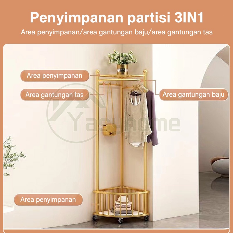 ❤️3in1❤️Rak Gantungan Baju Sudut Rak Mantel Multifungsi Stand Dapat dilepas Clothes Drying Rack Gaya Eropa Corner Hanger