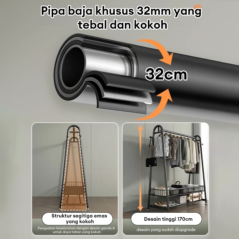 Triangle Stand Hanger Dengan 4 Hook Gantungan Rak Gantungan Baju Besi Serbaguna 60/120/150CM