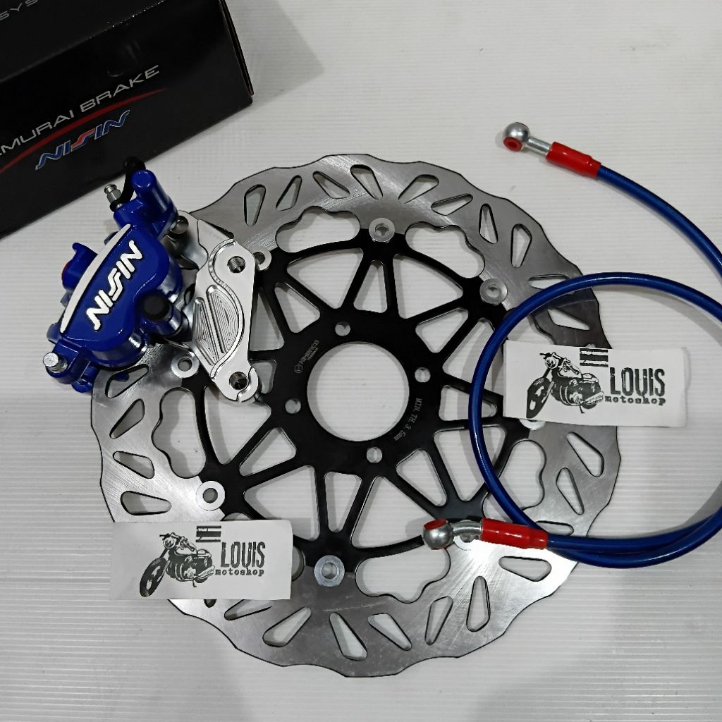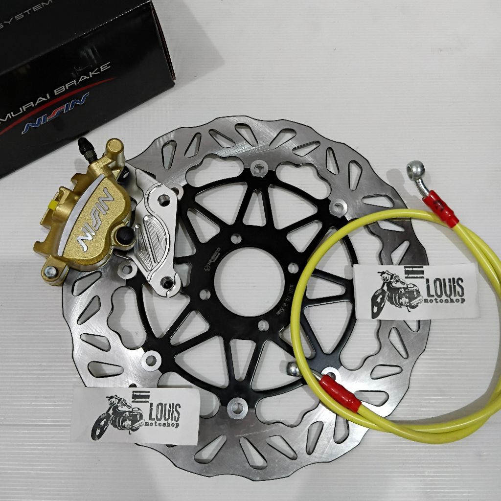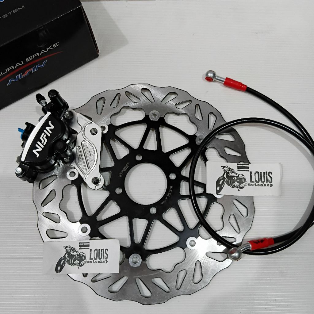 paket kaliper jupiter / jupiter z / jupiter old / burhan / vega old / fizr / paket kaliper kaliper ns samurai 2p piringan 300mm breket full cnc dan selang rem depan karbon 95cm