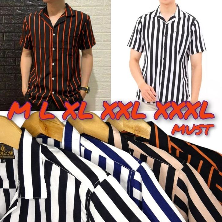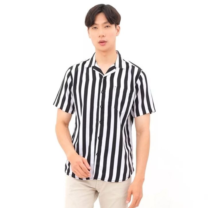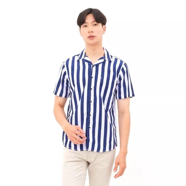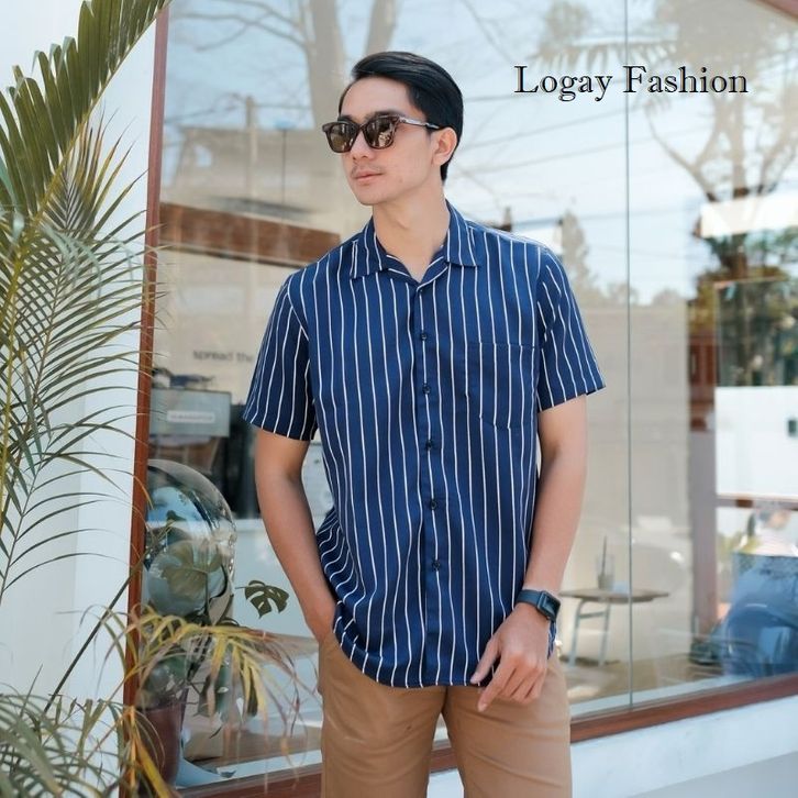 Kemeja Pria Casual Lengan Pendek Motif Stripe Salur Bahan Premium
