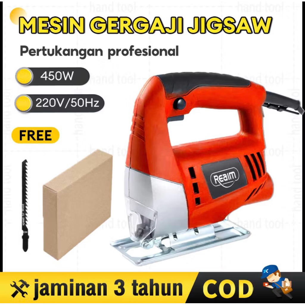 Mesin Gergaji Jigsaw Listrik 450W Reaim Alat Pertukangan Kayu Besi Listrik Profesional