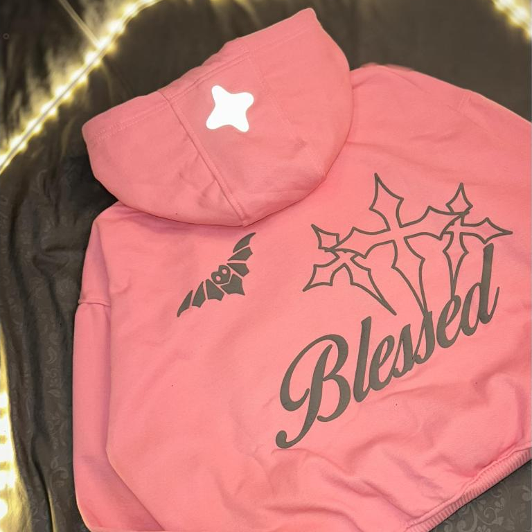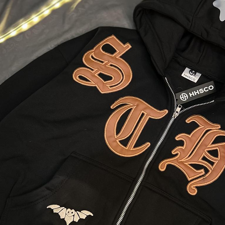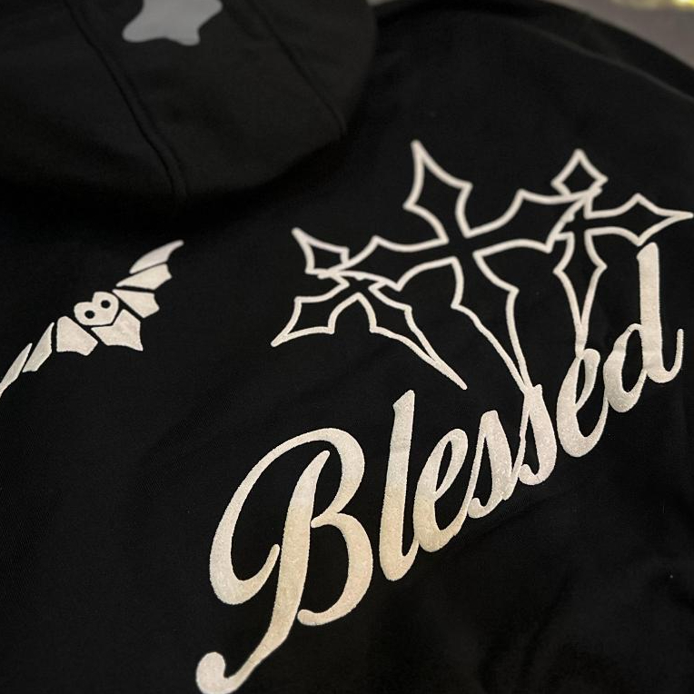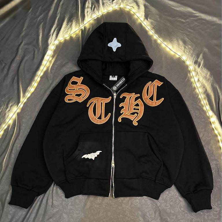 HHSCO - Hoodie Boxy Double Zipper Blessed HHSCO X STICH.CE 330 GSM Black Full Bordir Fleece Premium Fit Lembut Nyaman Pa