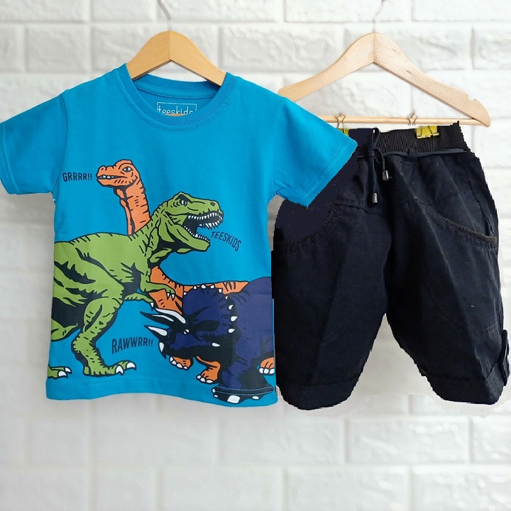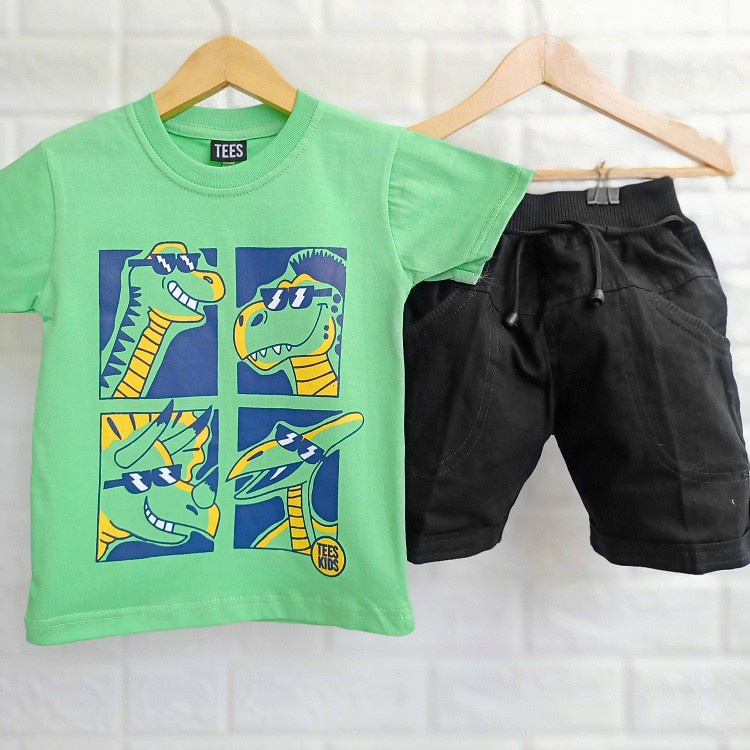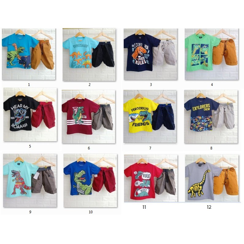 SETELAN KAOS ANAK COWOK DINO LC CELANA PENDEK 1 TAHUN - 9 TAHUN BAJU ANAK LAKI LUCU