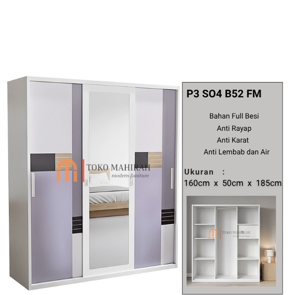 Lemari Pakaian importa 3 Pintu Ready stok, 100% Original bahan Full plat besi Gratis Ongkir