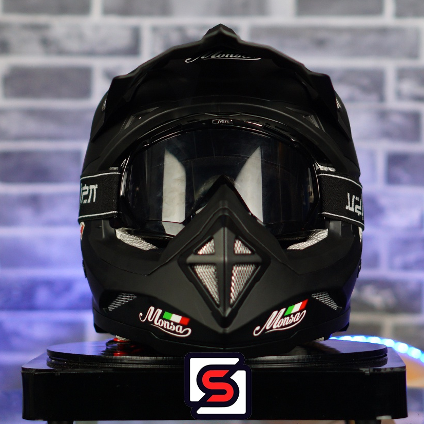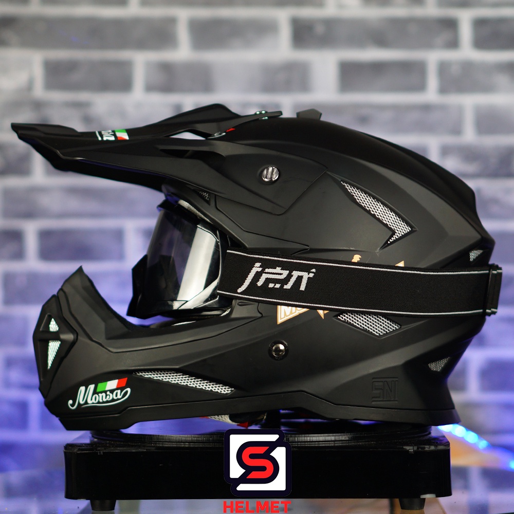 Helm Moto Trail Monsa SuperCross Solid Anak Sampai Dewasa SNI Paket Goggle