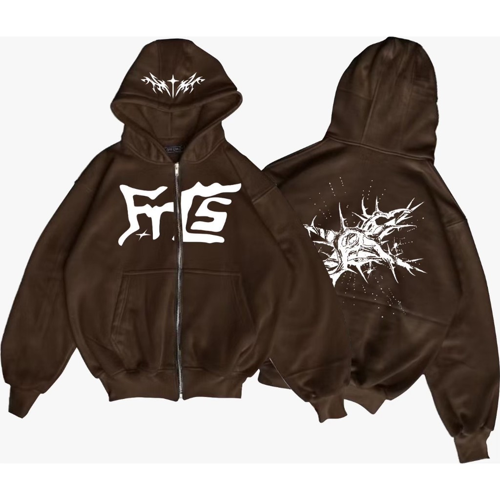 Faith Of Life Jaket Sweater Hoodie Coklat Boxy Keren Tebal Double Zipper Pria Dan Wanita Uni