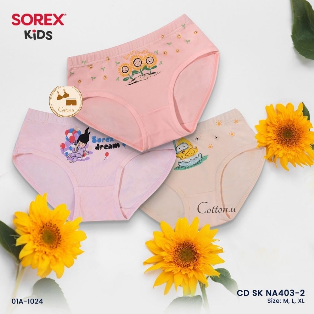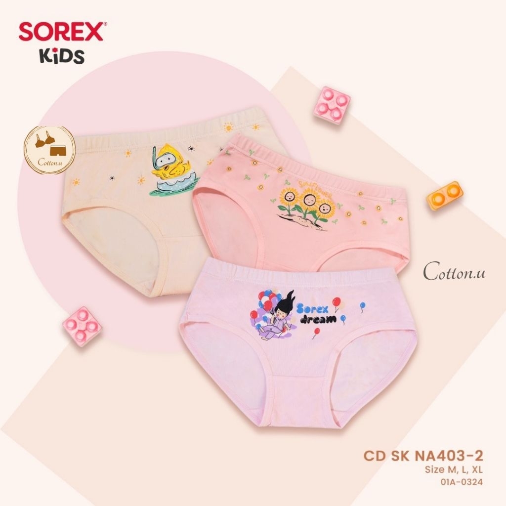 (3 Pcs) Celana Dalam Anak Perempuan Sorex NA 403 , CD anak perempuan Super Soft Premium Girl GN NA403 (SIZE M, L, XL) Mo