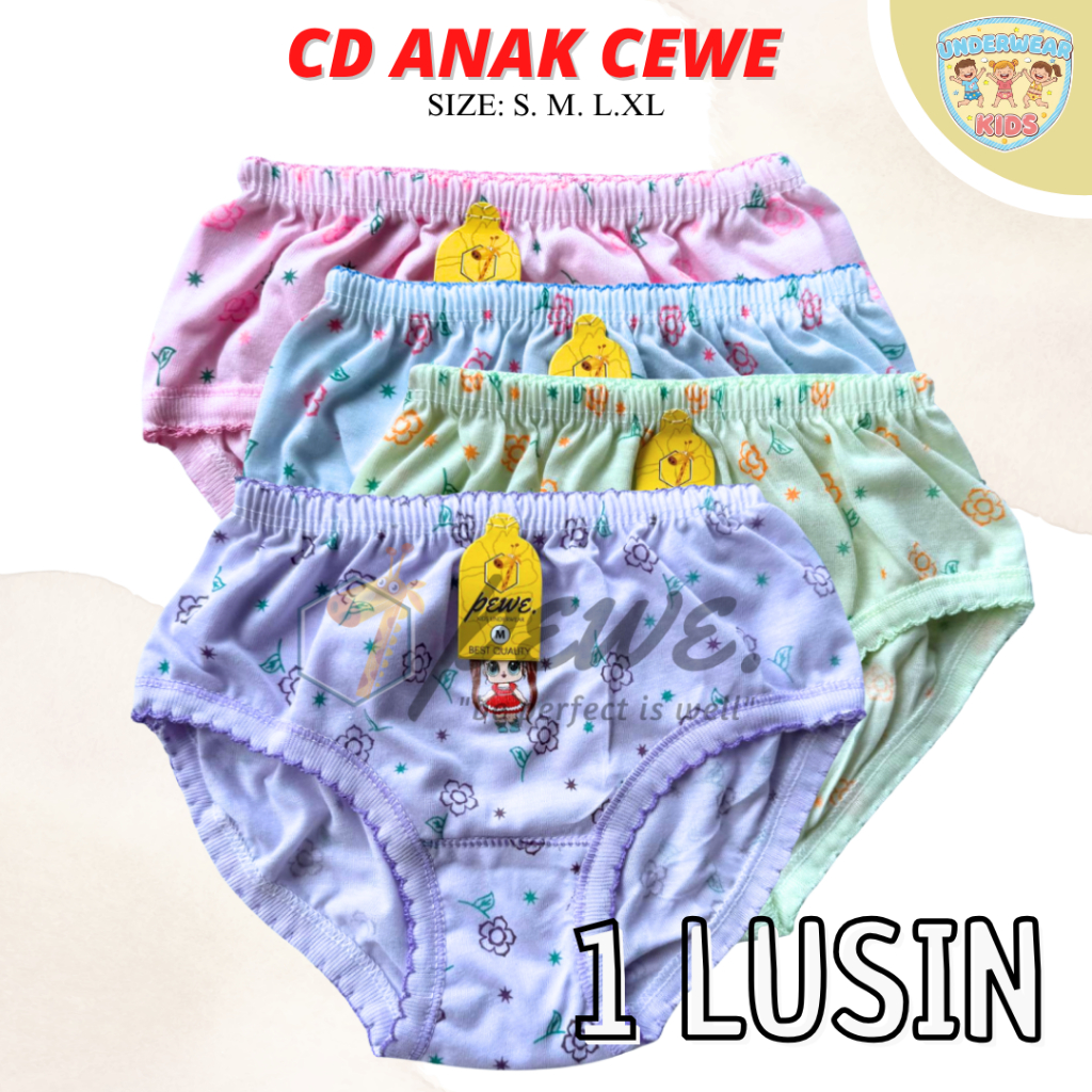 1 LUSIN Cd Anak Cewek Bahan Katun Adem Lembut Nyaman / Celana Dalam Anak Perempuan polos Tebal / Sempak Anak Cewek warna