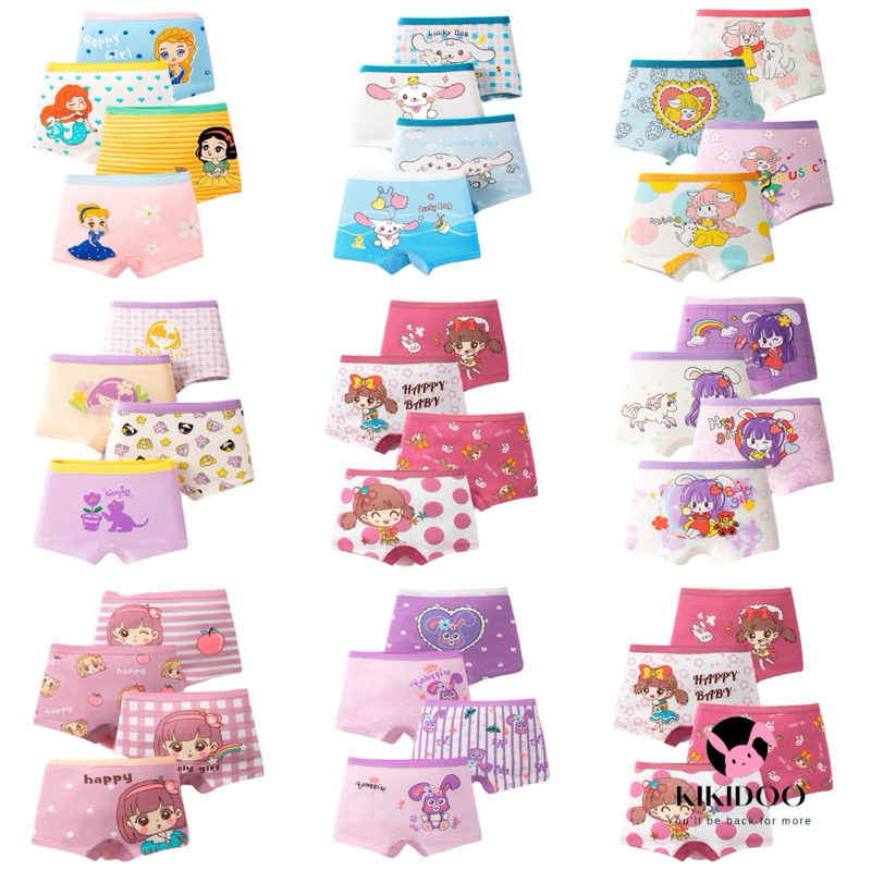 KKD Celana Dalam Boxer Anak Perempuan Katun Lembut 4pcs Motif Lucu Ukuran M-3XL – Nyaman & Adem