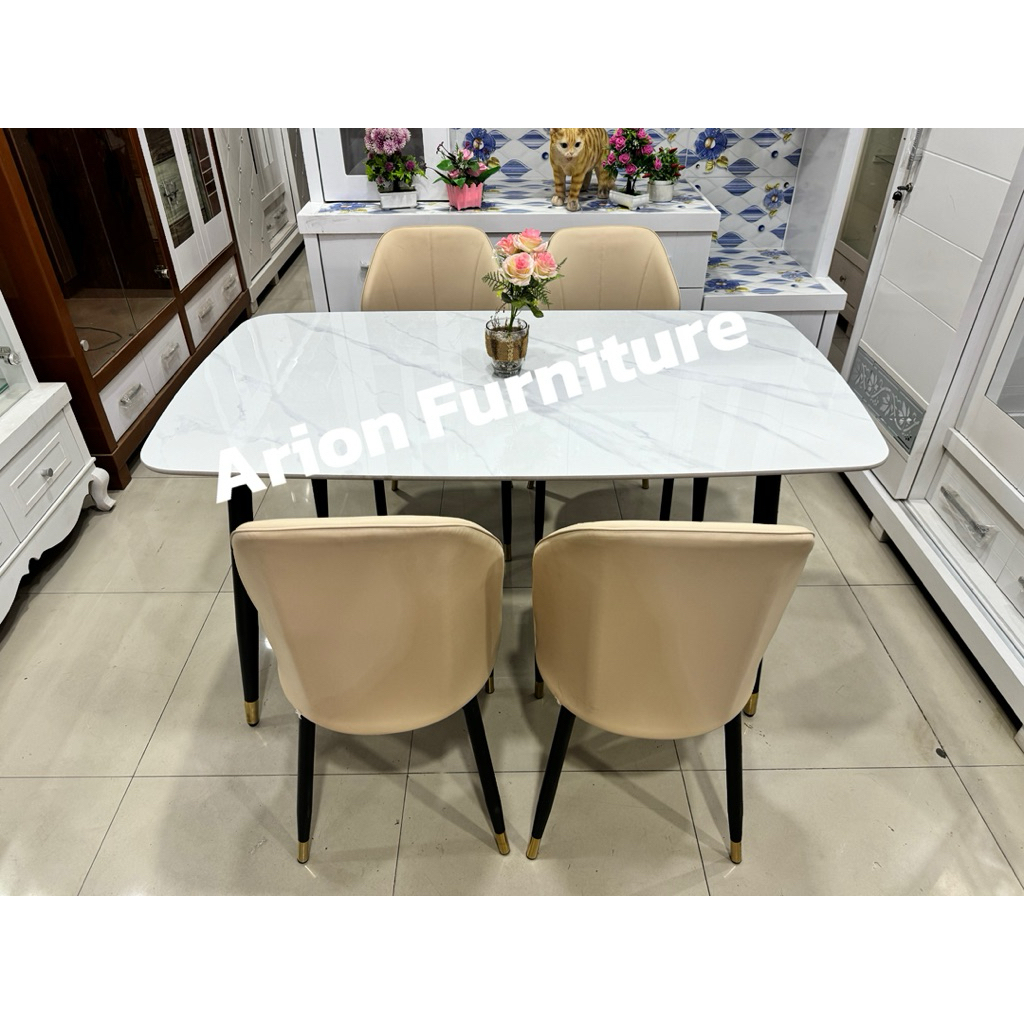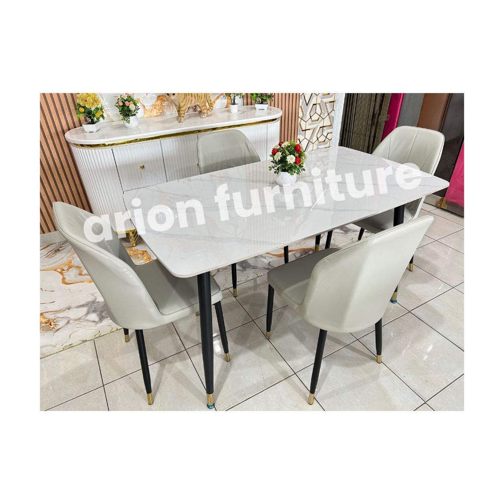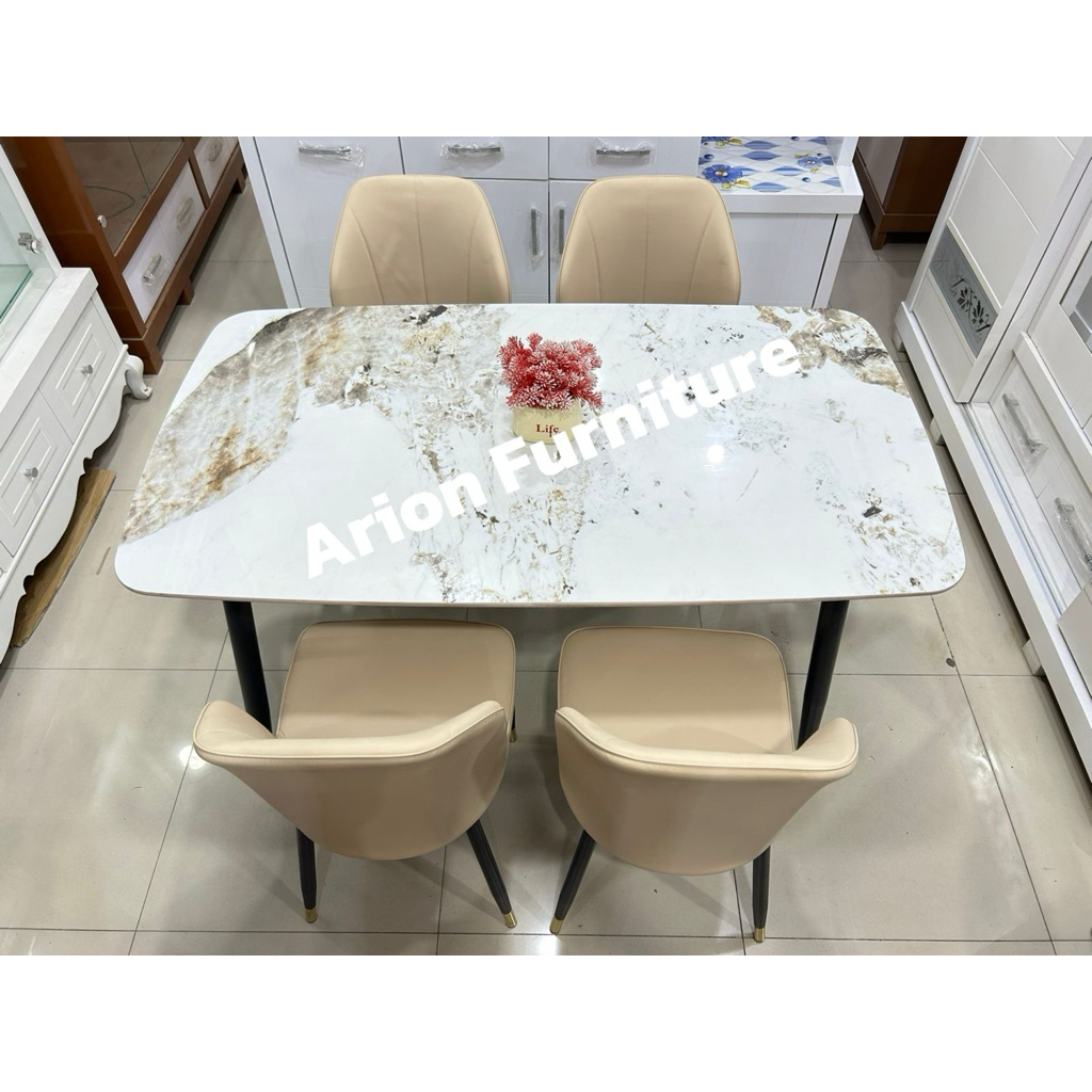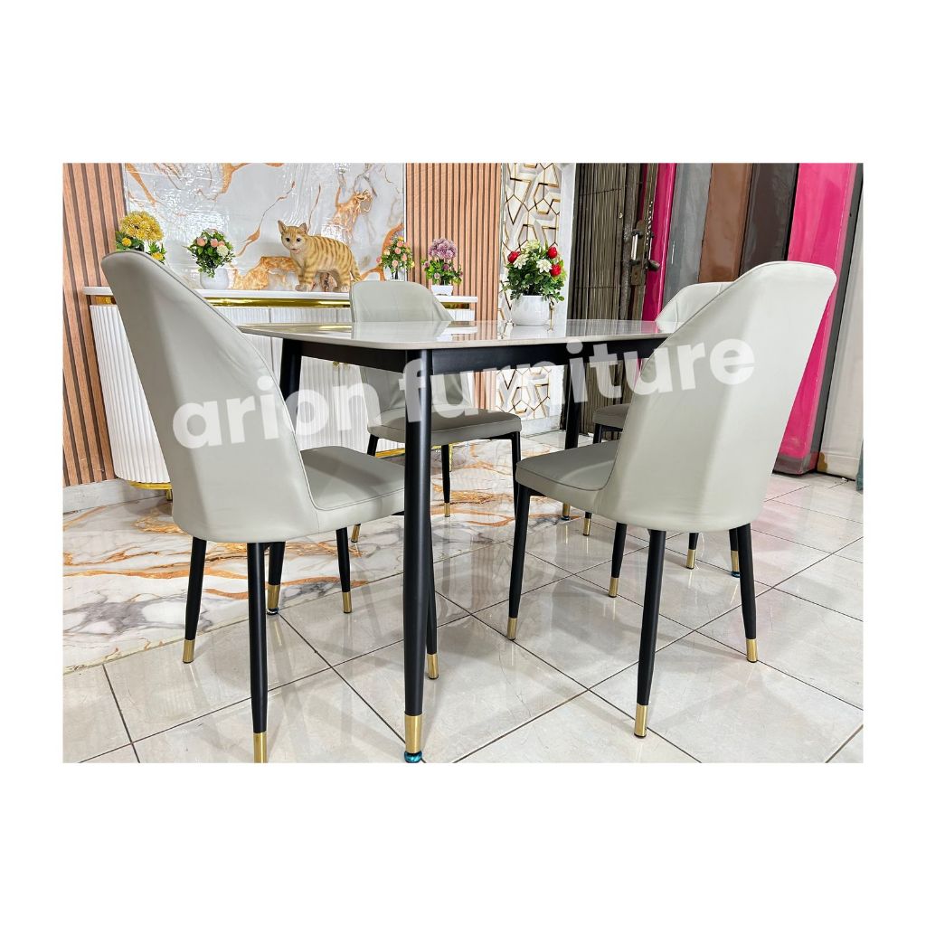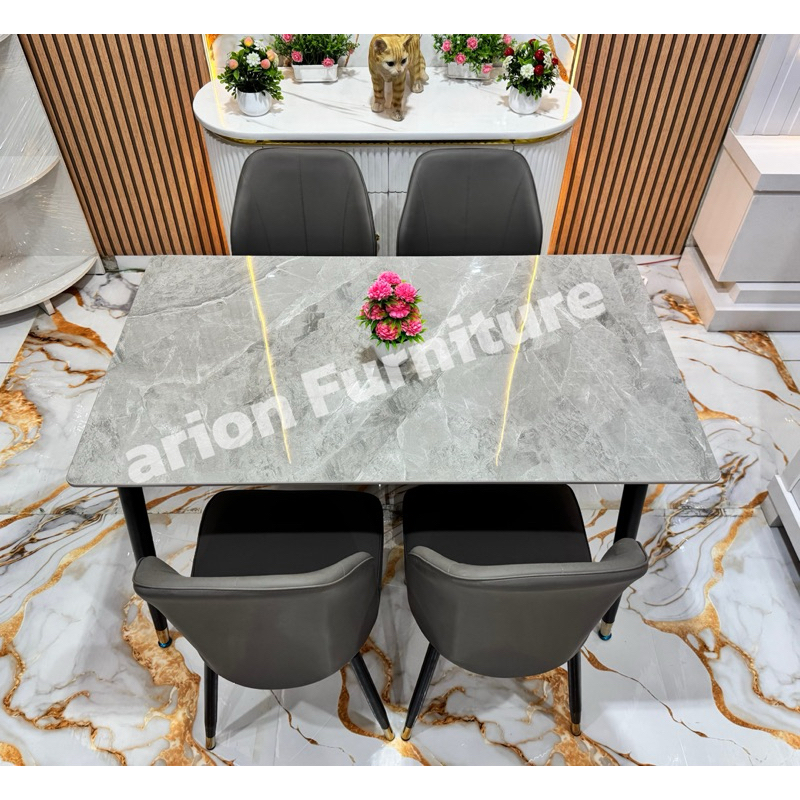 Meja Makan IMPORT/Meja makan 4 kursi/meja makan corak marmer /meja makan batu sintered UK120CM MEJA MAKAN KAKI BESI IMPO