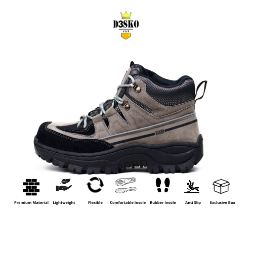 D3SKO G&B - Sepatu Boots Pria D3sko Pedro Safety Pria Ujung Besi Warna Gray Black