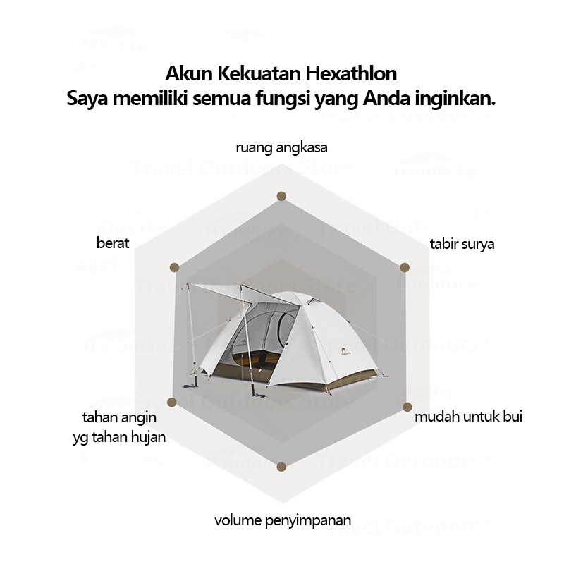 Naturehike Tenda Camping 2/3 Orang , Double Layer Dome Outdoor Tenda Gunung , Luar Ran Sangat Ringan Berkemah Dua Lapisa