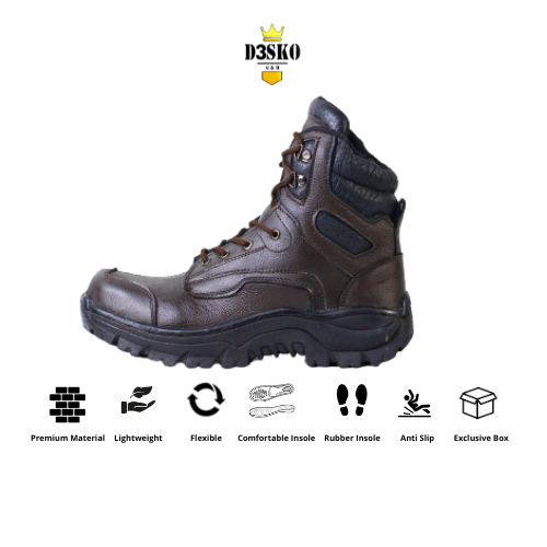 D3SKO G&B - Sepatu Boots Pria D3sko T-rex Safety Pria Ujung Besi Warna Coklat