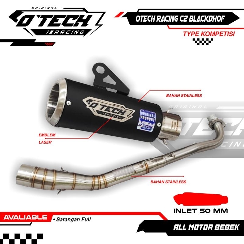 knalpot original otech racing short blackdof fullset jupiter vega supra karisma revo smash pnp